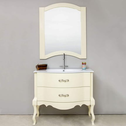 Mobile bagno avorio due cassettoni e specchio in legno, collezione Giotto
