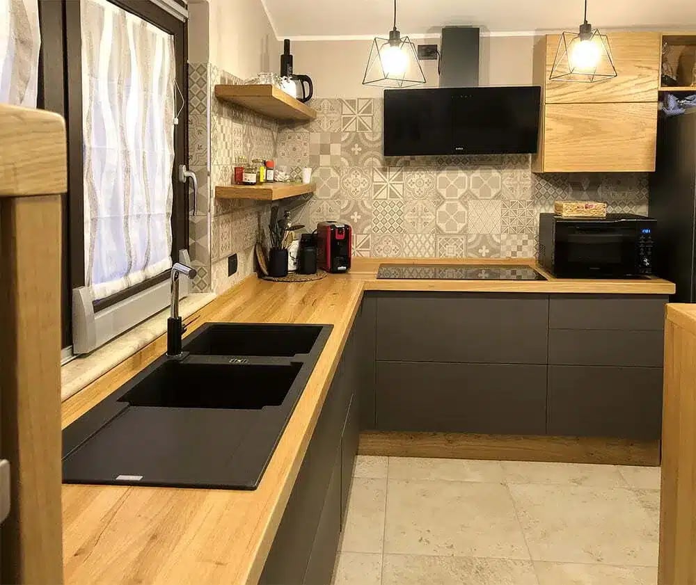 Allarga Kitchen Cucina su misura in Stile Industrial: Il Calore del Rovere e l’Eleganza del Grigio Scuro
