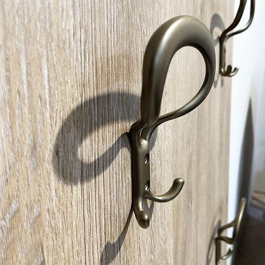 I quattro ganci robusti permettono di appendere giacche, borse, sciarpe e cappelli mantenendo lo spazio organizzato senza rinunciare all’eleganza.