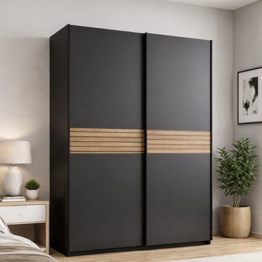 Armadio Metropol 2 ante scorrevoli 150 cm. colore antracite con inserti rovere