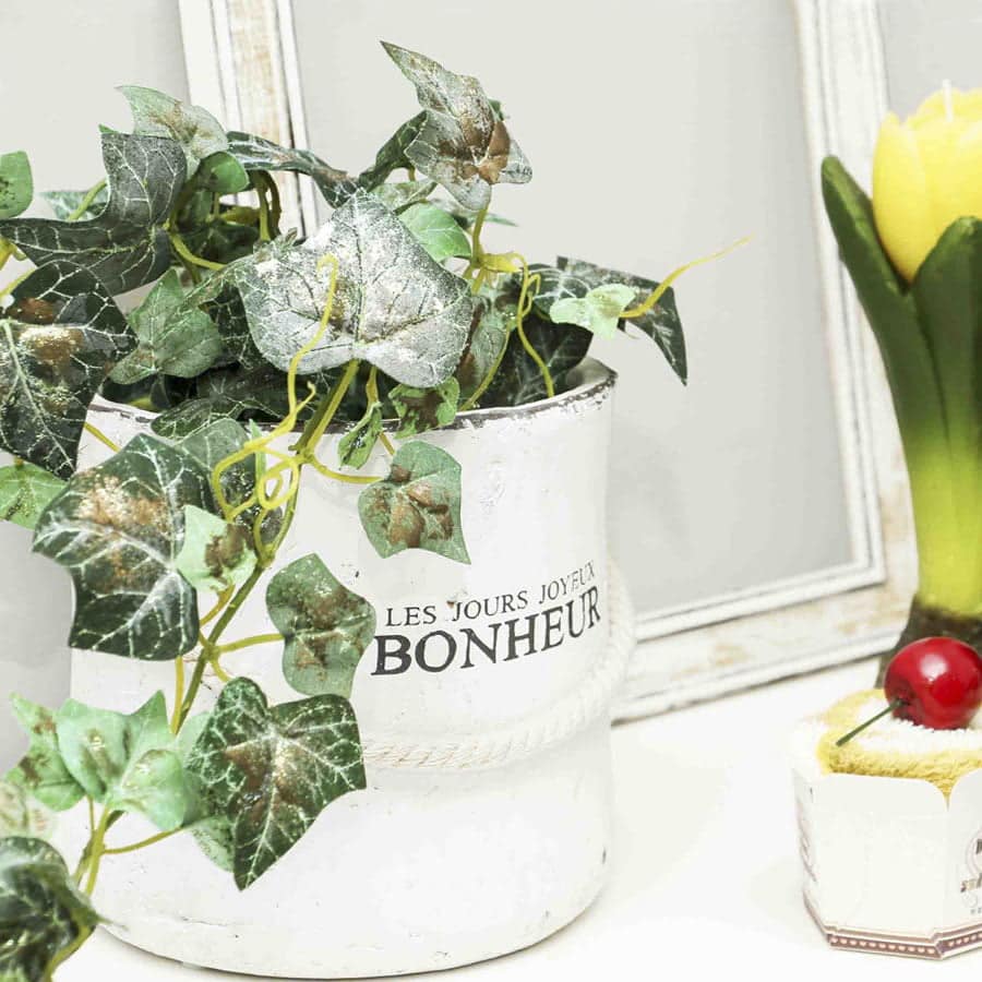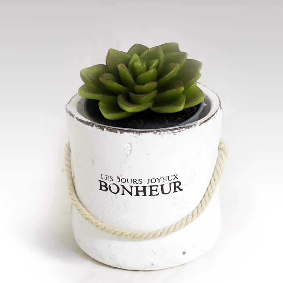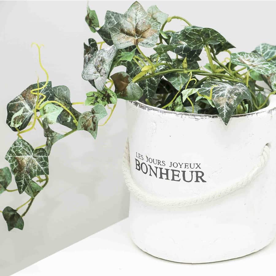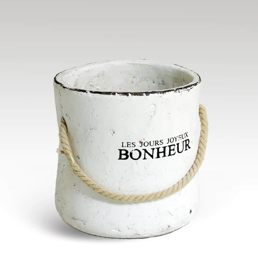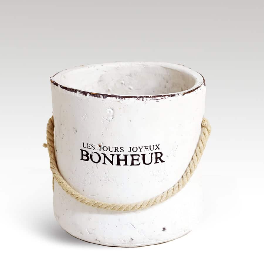 Cache pot “Les jours joyeux Bonheur” in ceramica bianca