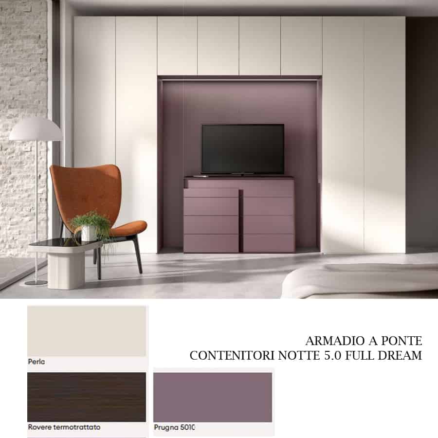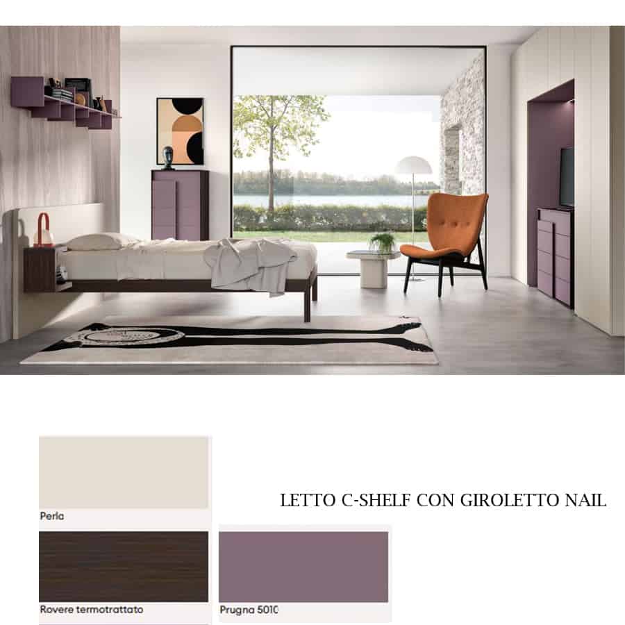 Armadio a ponte, Contenitori notte 5.0 Full Dream, Letto C-Shelf con giroletto NailM, Mensole Manhattan