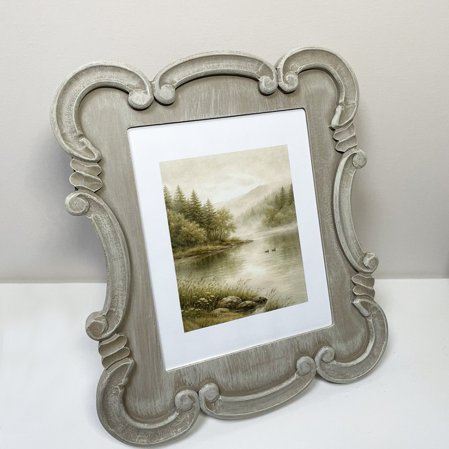Questa raffinata cornice decorativa Bruma del Lago è un elemento d’arredo dal fascino senza tempo, perfetto per ambienti romantici e luminosi.