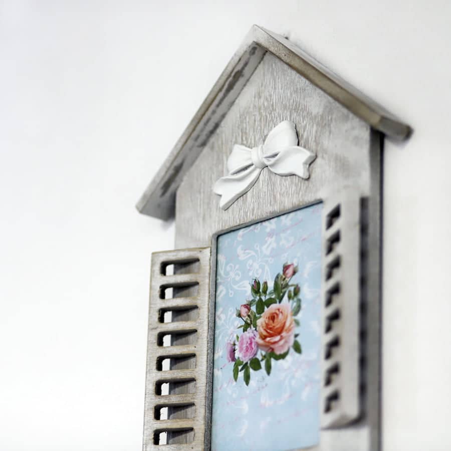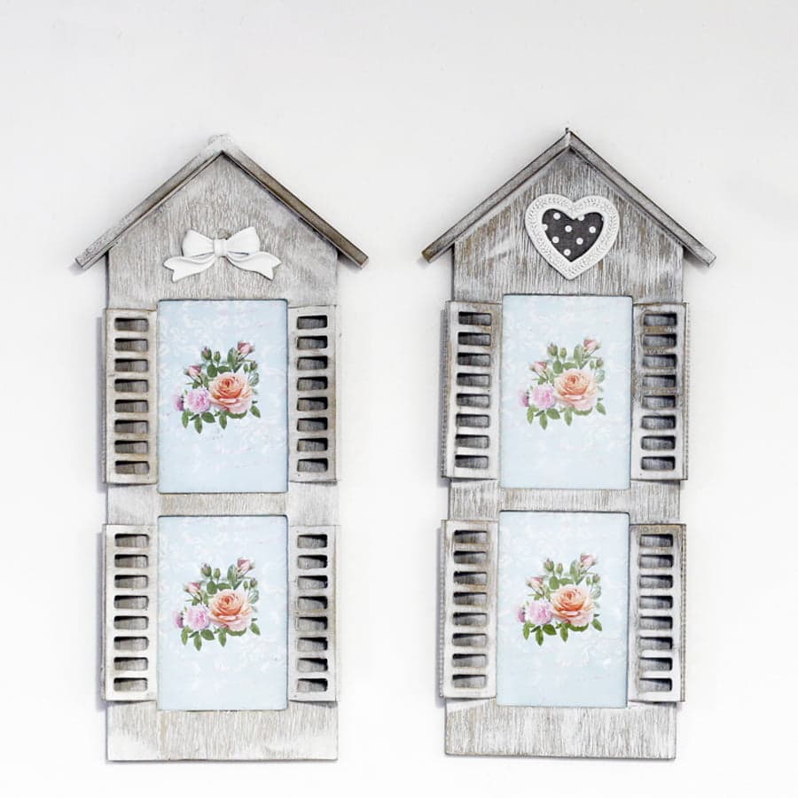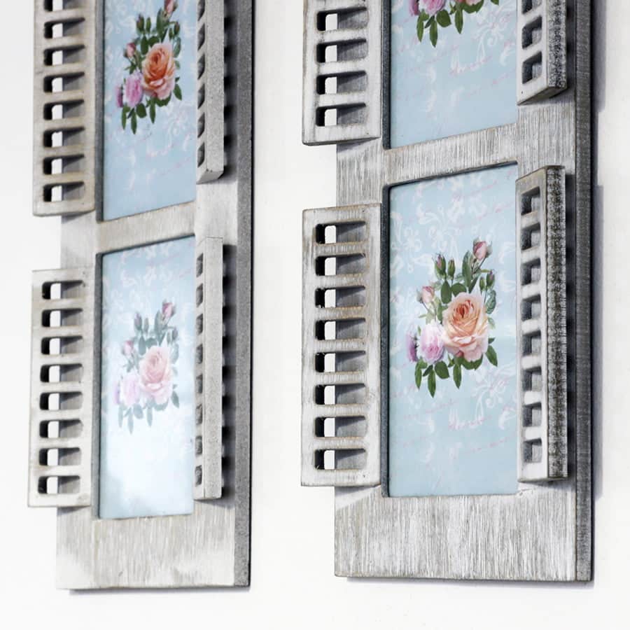 Cornici da parete in legno stile Shabby Chic con applicazioni in 3D che richiamano le persiane di una finestra.