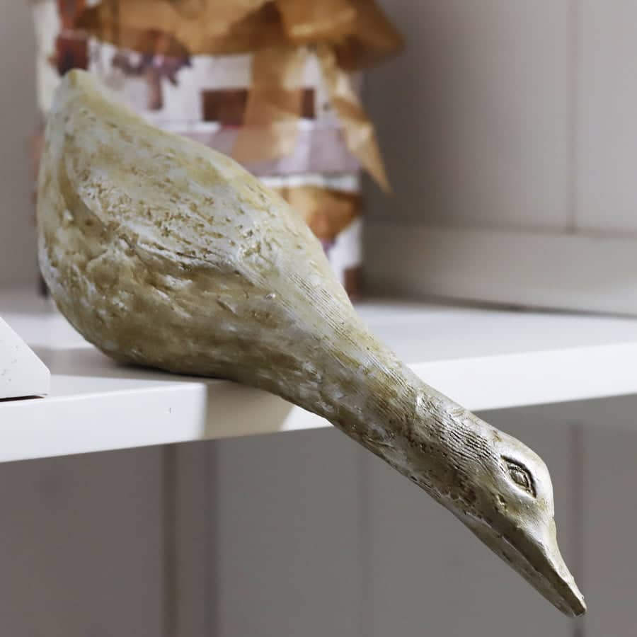 Puoi appoggiare il decoro su qualsiasi superficie alta, sembrerà che l’anatra ti segua con lo sguardo…