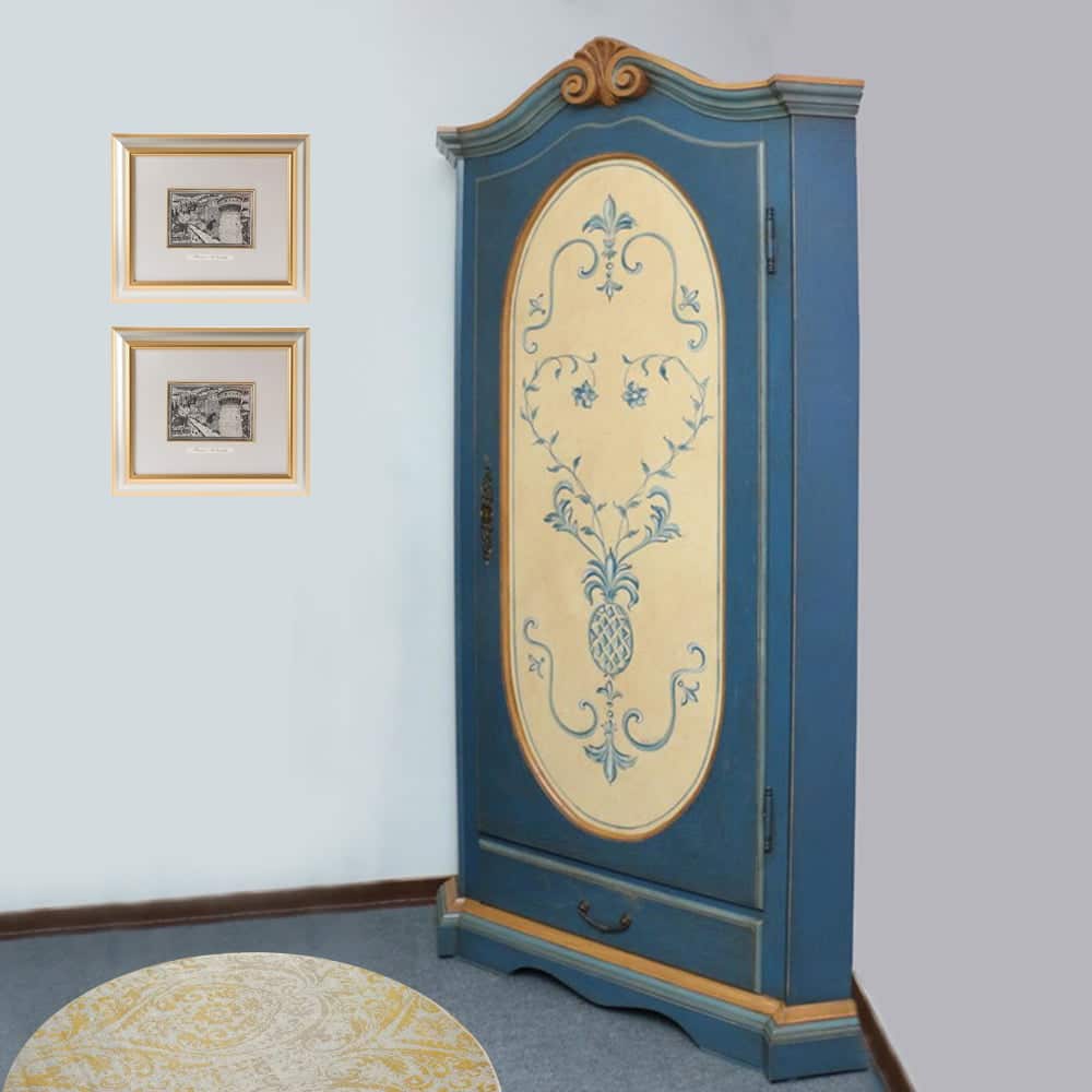 Hai mai fatto caso a quanto vengono ignorati gli angoli? Si pensa sempre che per arredarli servano mobili su misura, invece no: questo armadio angolare stile provenzale potrà essere utilizzato come una dispensa da cucina, un appendiabiti da ingresso o un armadietto in camera spogliatoio.