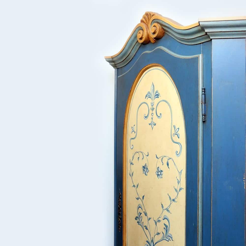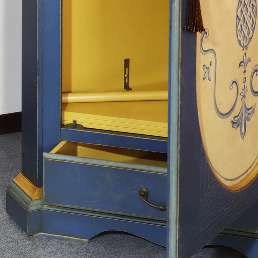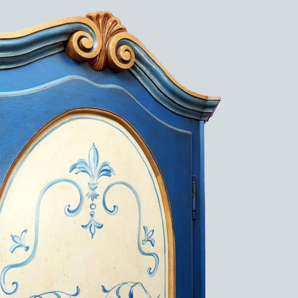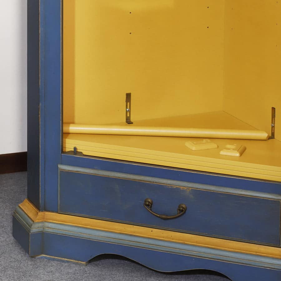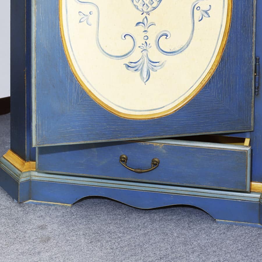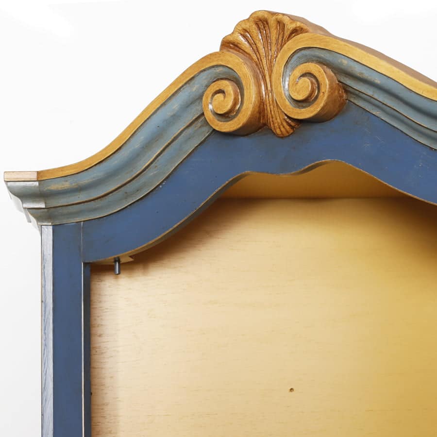 Dispensa o appendiabiti angolare in legno massello laccato blu con decoro a mano.
