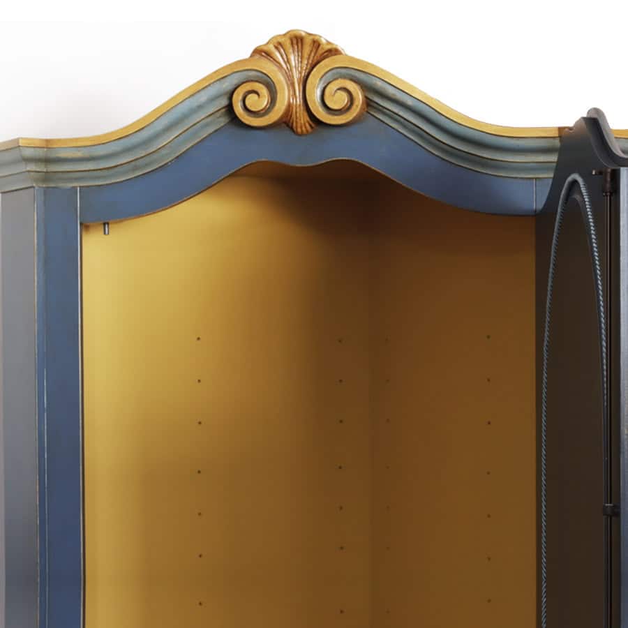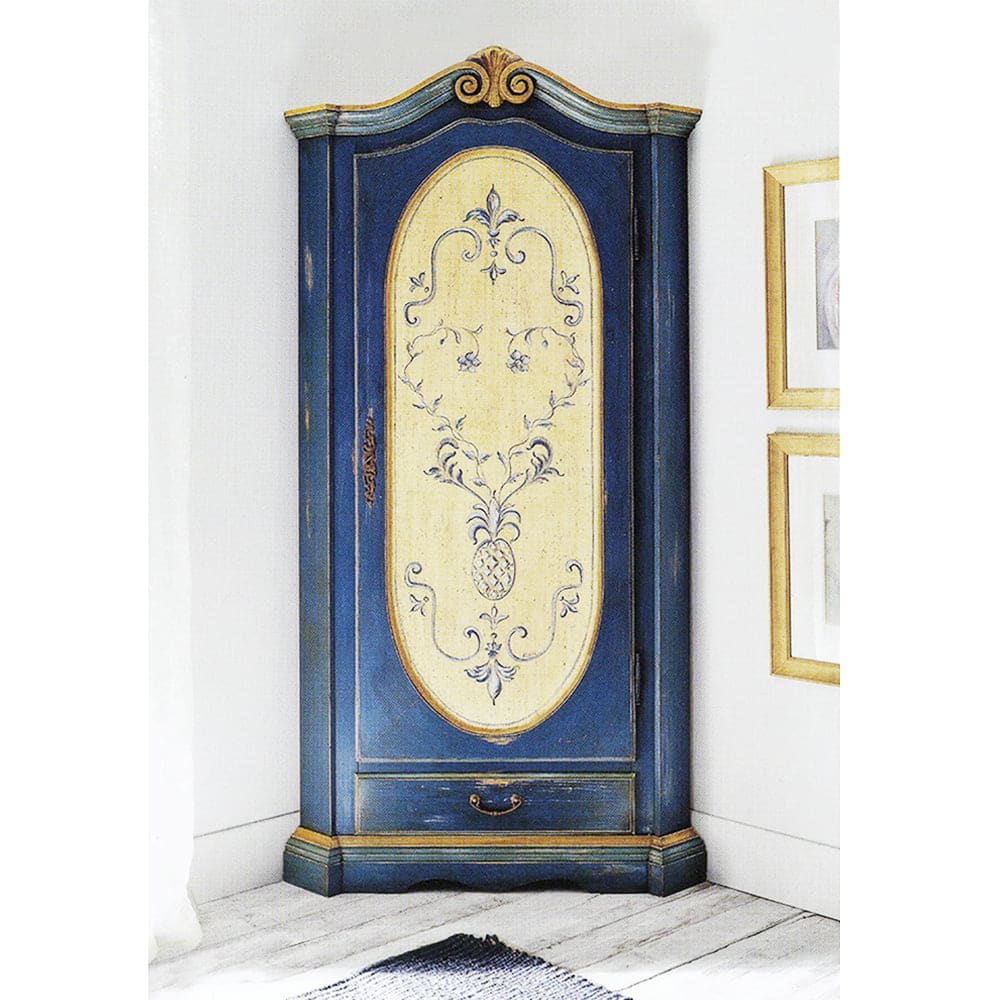 La dispensa o appendiabiti angolare Mobilbracco in legno massello ha superfici pastello per ambienti neoromantici, eleganti e accoglienti.