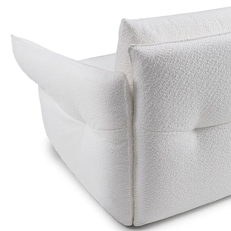 Le forme morbide sono valorizzate da soffice tessuto buclé in color panna, che ha tutte le caratteristiche per rendere confortevole tutto il tempo passato su Dobble. I braccioli di Dobble si possono piegare, adattandoli in base al comfort desiderato.