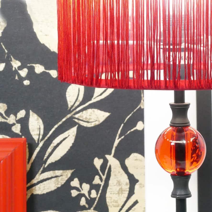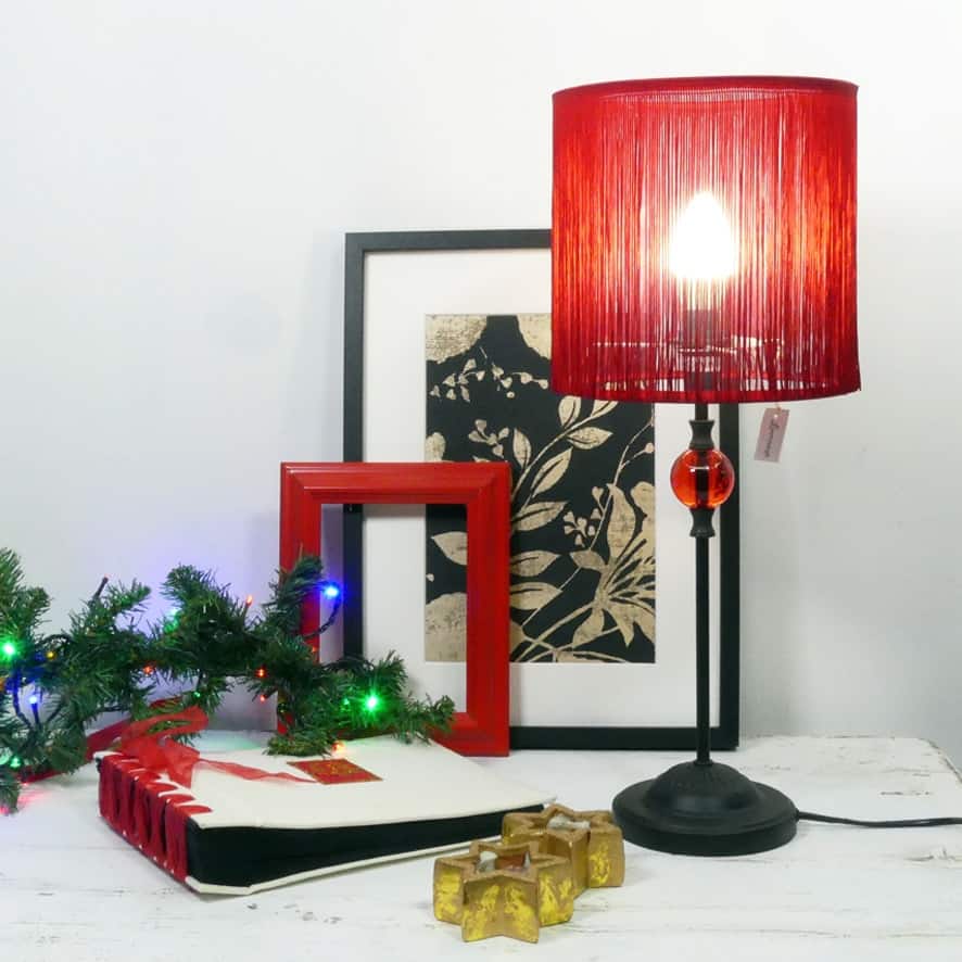 Lampada da tavolo rossa con fili in cotone