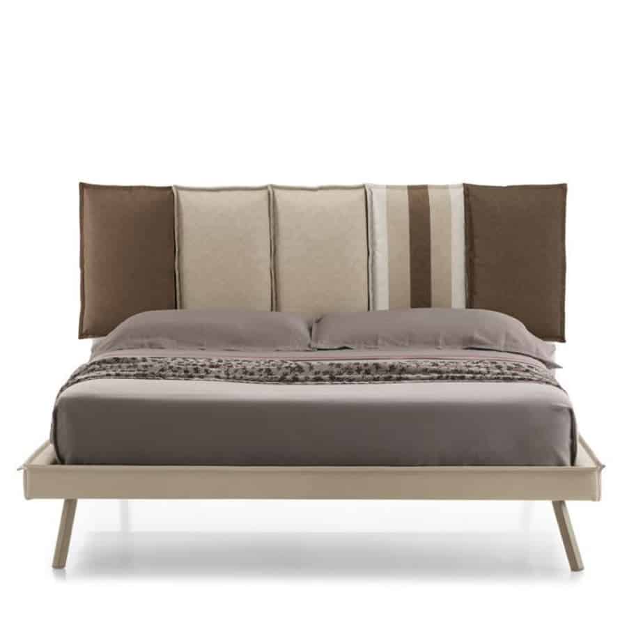 Letto imbottito Darwin Cod. BD457, testata 5 cuscini con inserti in colorazioni tono su tono Corda.