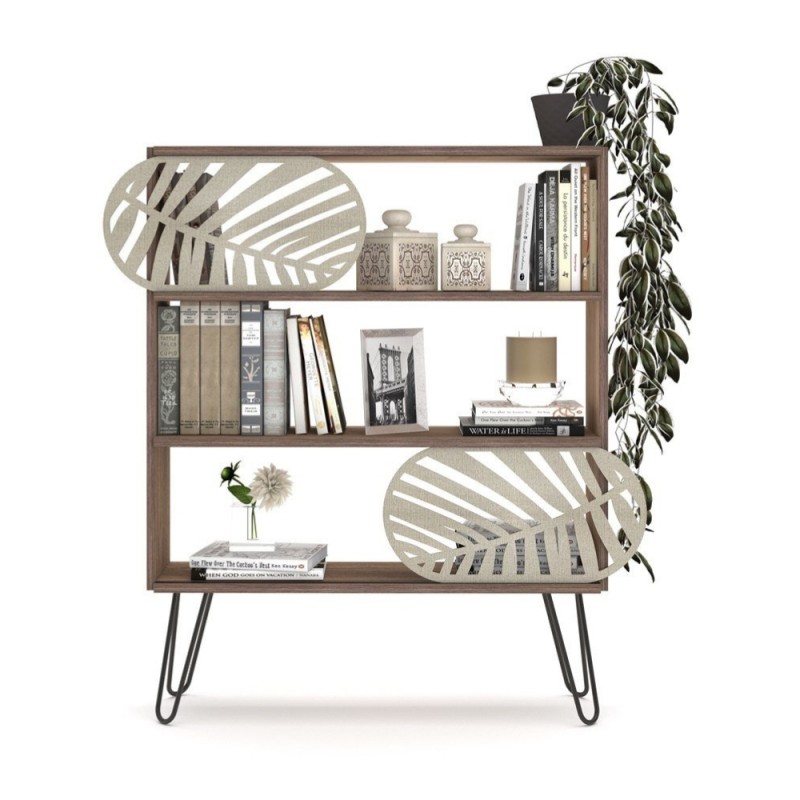- Design Compatto a 3 Ripiani: Con i suoi tre ripiani spaziosi, di cui il primo e l’ultimo caratterizzati da un binario dove scorrono due griglie forate color crema che rendono la libreria davvero originale, è perfetta per contenere non solo libri, ma anche oggetti decorativi, piante e piccoli accessori.