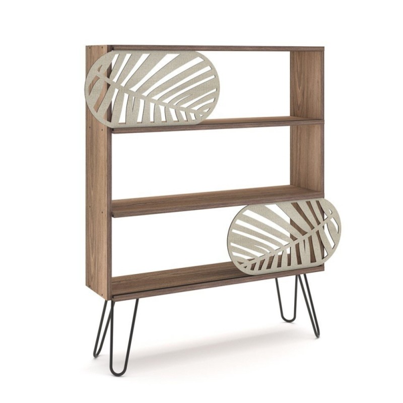 Ha 3 ripiani, di cui primo e ultimo caratterizzati da un binario dove scorrono due griglie forate color crema. Questo particolare rende la libreria davvero originale.
