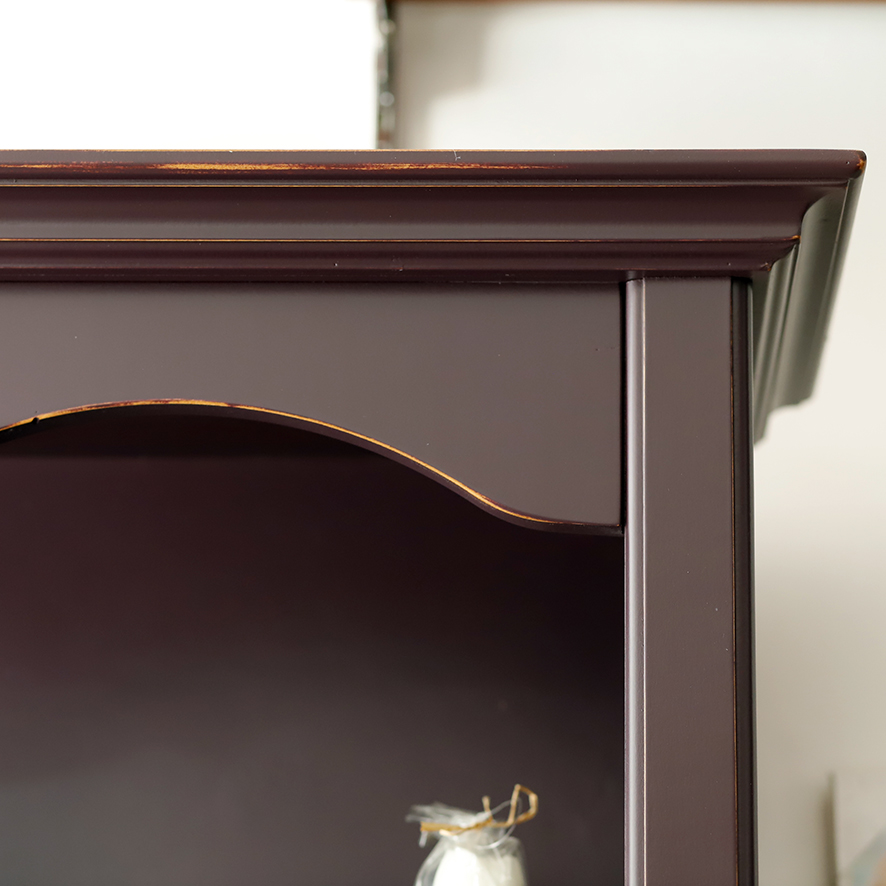 Ogni linea, ogni curva di questa libreria è un omaggio alla tradizione. Il cornicione superiore e inferiore si distingue per le sue forme morbide e armoniose, donando alla struttura una presenza scenica d’altri tempi.