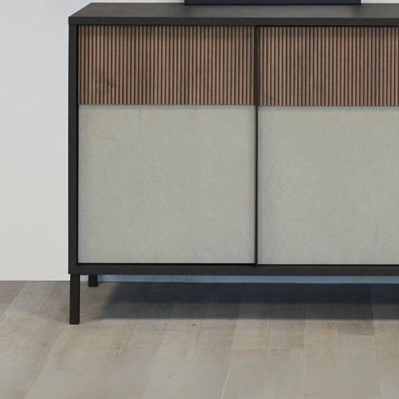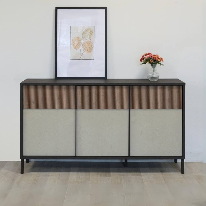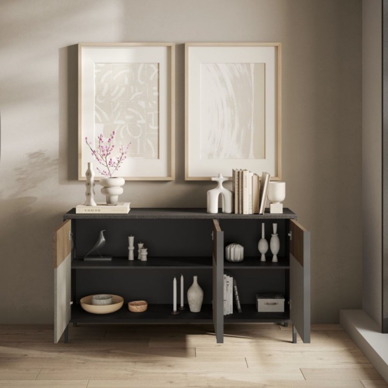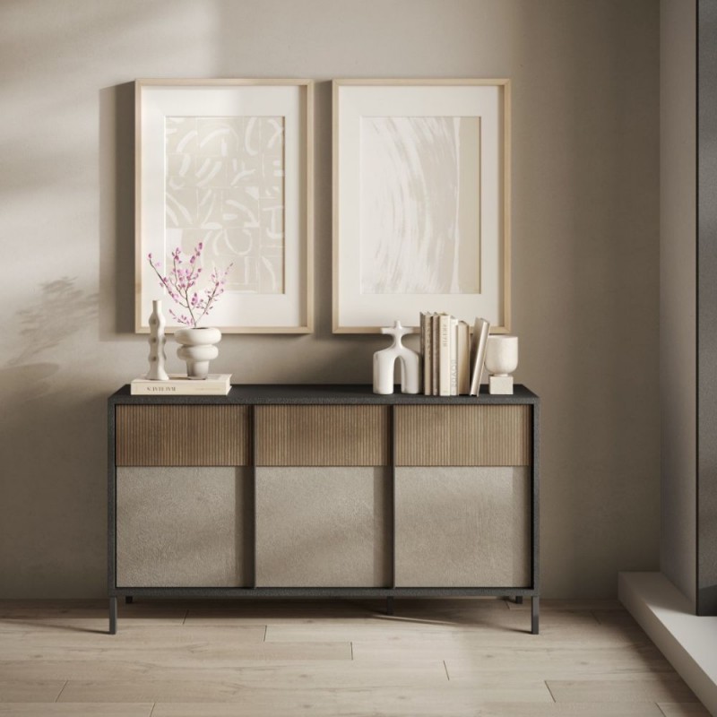 Nel contesto della Madia Anka 3 ante, il design con effetto canneté si riferisce a una lavorazione della superficie delle ante che riproduce questo tipo di texture a rilievo. Si tratta di un dettaglio molto apprezzato nell’arredamento contemporaneo perché aggiunge profondità e carattere al mobile, creando un gioco di luci e ombre sulle superfici.