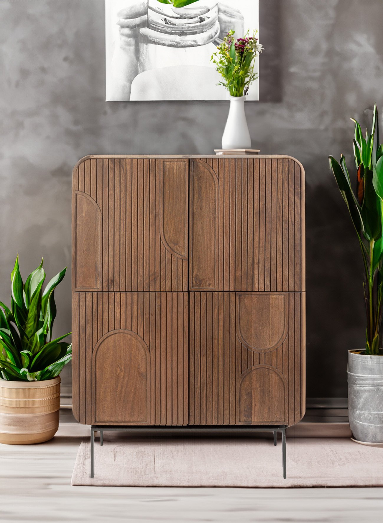 Con quattro ante, il mobile Orissa offre ampio spazio per organizzare e conservare una varietà di oggetti, dai libri agli oggetti decorativi, dai vestiti ai giochi dei più piccoli. Le dimensioni verticali del mobile lo rendono una soluzione ideale per gli ambienti più piccoli, ottimizzando lo spazio senza sacrificare lo stile. Le ante chiuse offrono una soluzione discreta per nascondere l’ingombro quotidiano, mantenendo l’ambiente ordinato.
