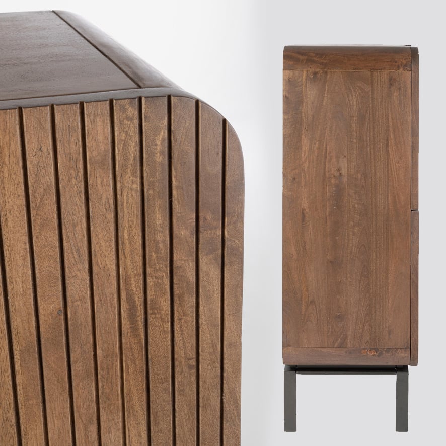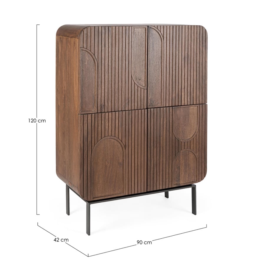 Il mobile alto Orissa 4 ante cannettate si distingue per il suo design elegante e versatile. Le ante cannettate aggiungono una nota di sofisticatezza, offrendo al contempo un’occasione per mostrare ciò che è all’interno del mobile stesso. Questo design aperto crea un equilibrio tra praticità e estetica, permettendo di nascondere oggetti non desiderati mentre si mettono in mostra quelli più belli.