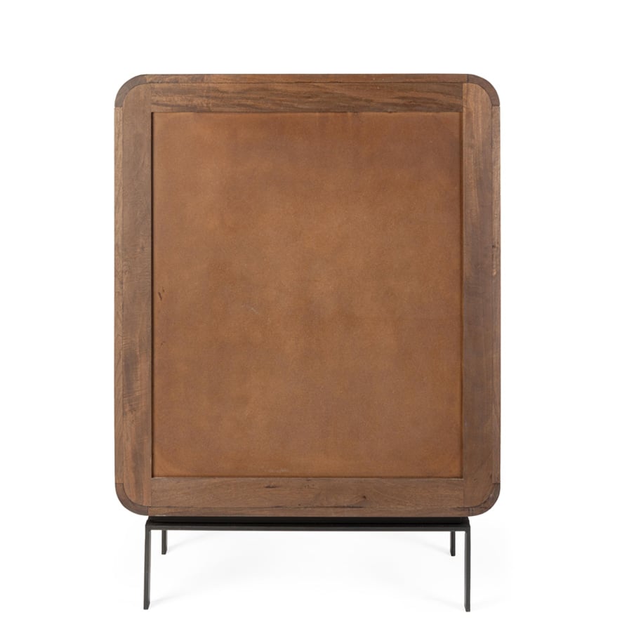 Struttura in legno di mango, schienale in mdf. finitura con vernice a base d’acqua, base gambe in acciaio verniciato a polvere epossidica, vano porta comprensivo di mensola, gambe da assemblare.