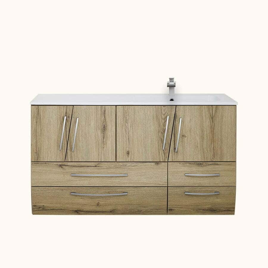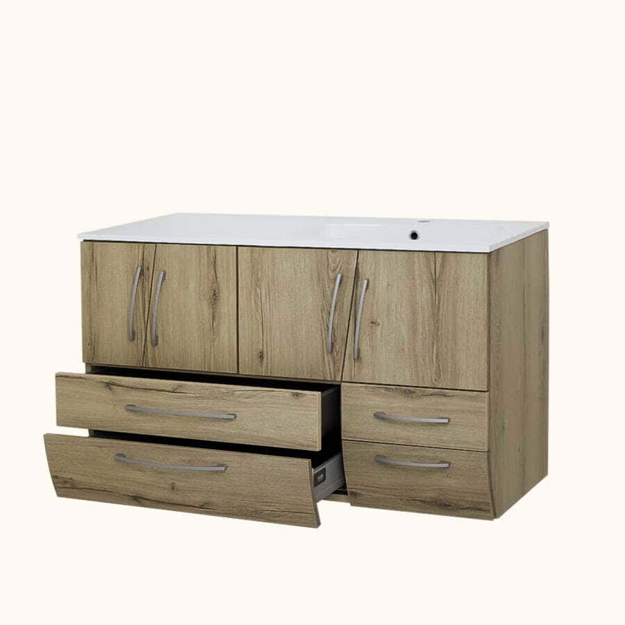 New York, il nuovo mobile bagno sospeso dalle linee decise ed inconfondibili. Le maniglie in metallo cromato creano un contrasto con la delicata finitura in legno, conferendo carattere all’intera composizione. L‘estetica si coniuga con la funzionalità: 4 cassetti di due diverse dimensioni, 4 vani a giorno con ante in cui riporre i tuoi oggetti ed un lavabo asimmetrico in ceramica bianca con vasca a destra rendono il mobile luminoso e pratico.