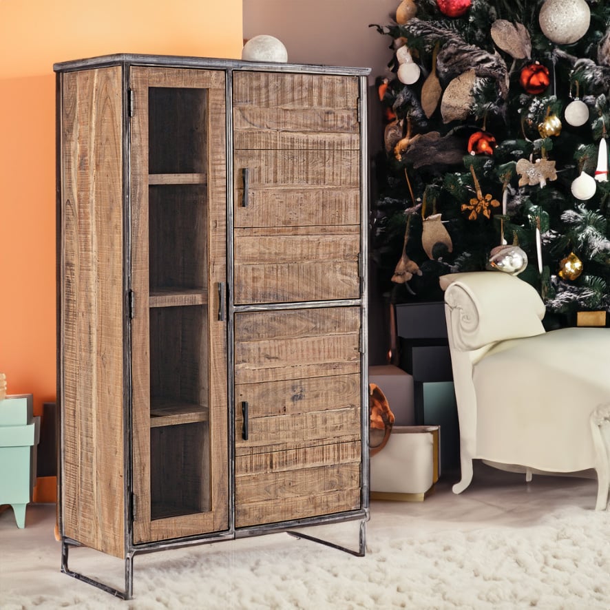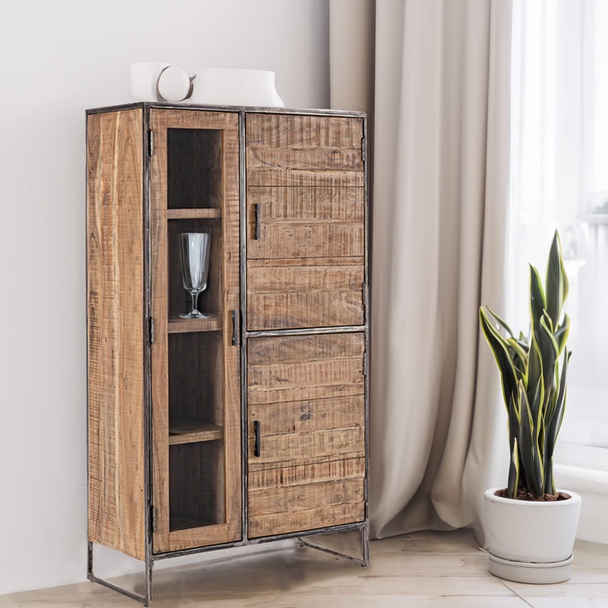 Realizzato con legno d’acacia, vetro e strutura in acciaio, il Mobile con Vetrina Elmer garantisce durabilità e sicurezza. Le cerniere robuste assicurano un’apertura fluida delle ante, mentre i dettagli curati, come le maniglie ergonomiche, conferiscono un tocco di classe.