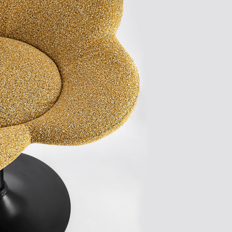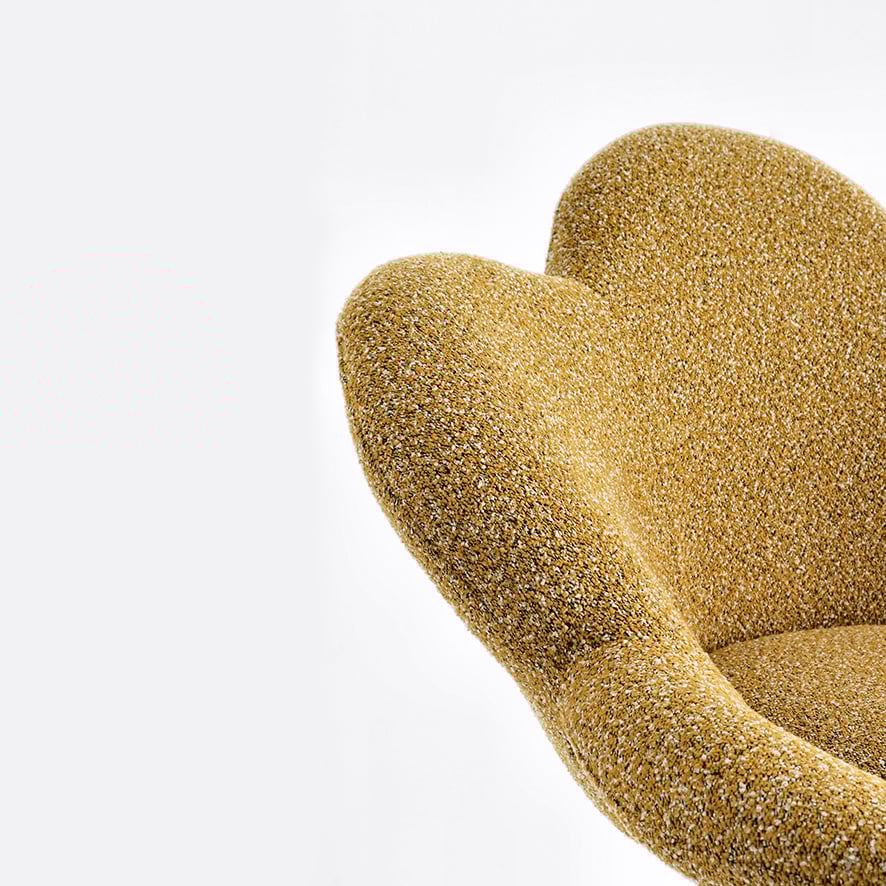 - Schienale a Forma di Fiore: Il punto focale della poltroncina Fleur è lo schienale, ispirato alla delicata forma dei petali di un fiore. Questo dettaglio conferisce al pezzo un aspetto raffinato e accogliente, perfetto per aggiungere un tocco di natura e stile a qualsiasi ambiente, dal soggiorno alla camera da letto.