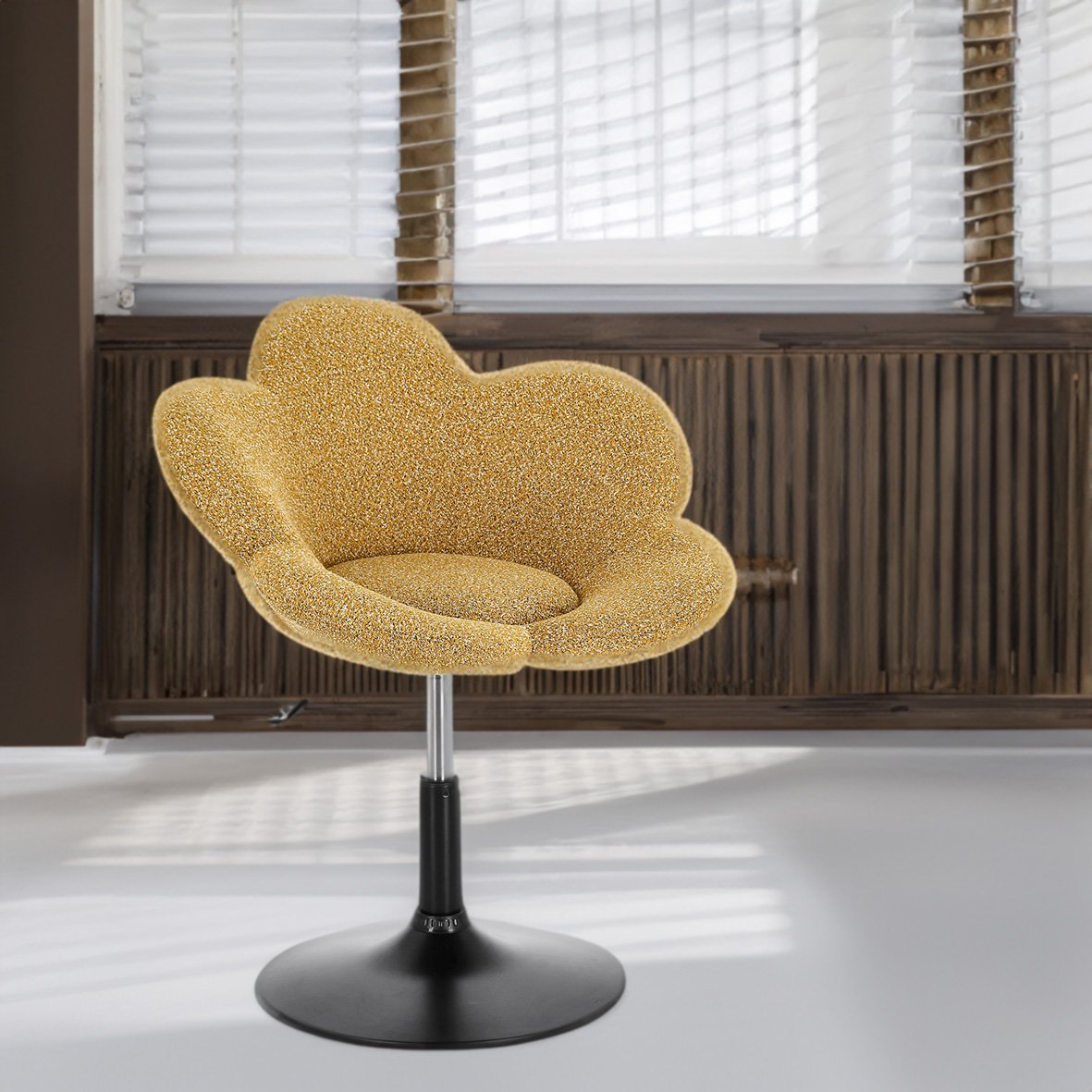 - Versatilità d’Uso: Grazie al suo design sofisticato e alla regolabilità dell’altezza, la poltroncina Fleur si adatta perfettamente a molteplici contesti: può completare un’area vanity, un angolo lettura, oppure aggiungere un tocco di stile all’ufficio domestico.
