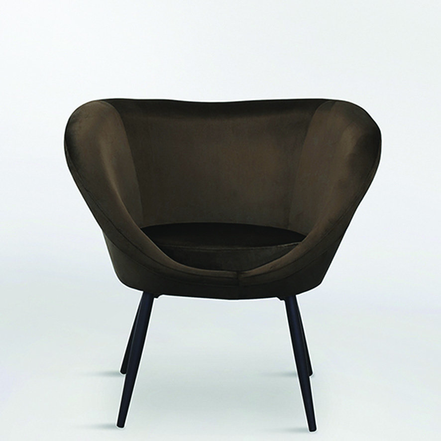 Poltroncina Ozome in ciniglia con gambe in metallo rifinito in color nero.