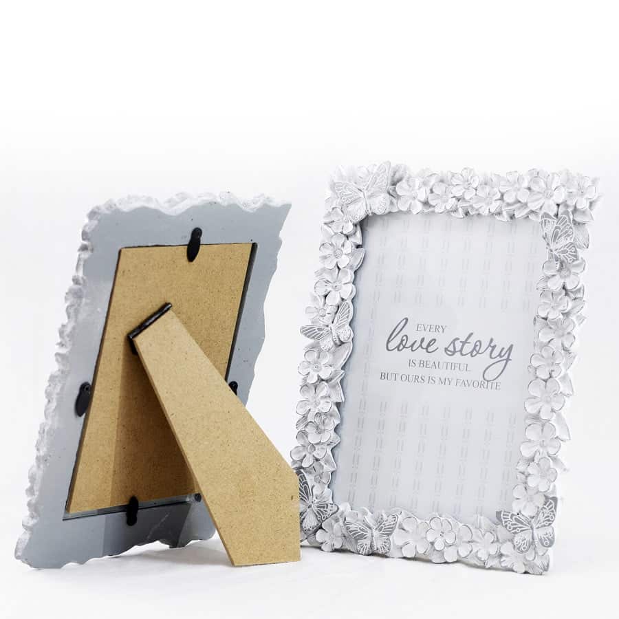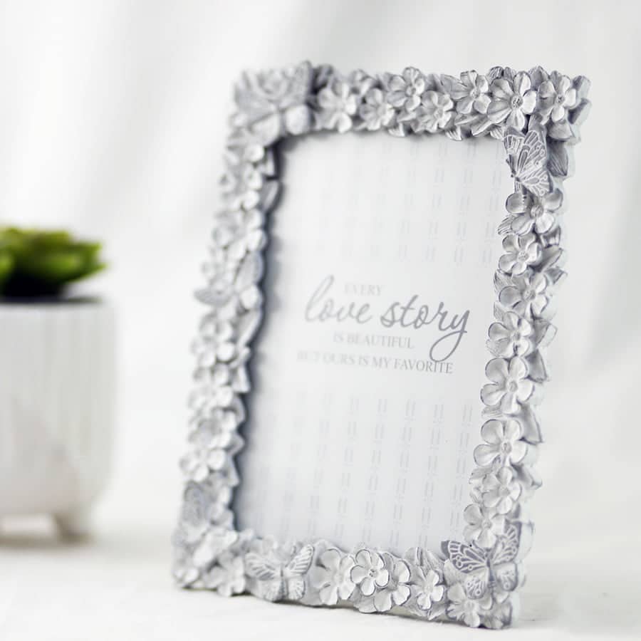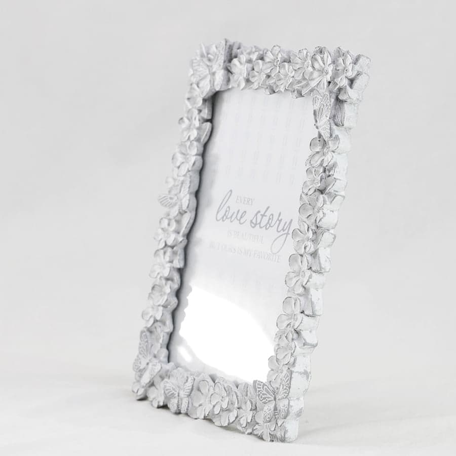 Il portafoto in resina anticata e decorata con fiori e farfalle a rilievo sono un’ottima idea regalo