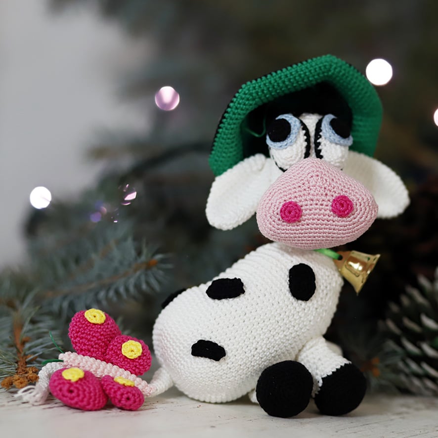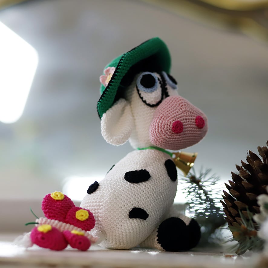Porta un tocco di dolcezza nella tua casa con questo adorabile pupazzo mucca Daisy realizzato all’uncinetto in stile amigurumi!