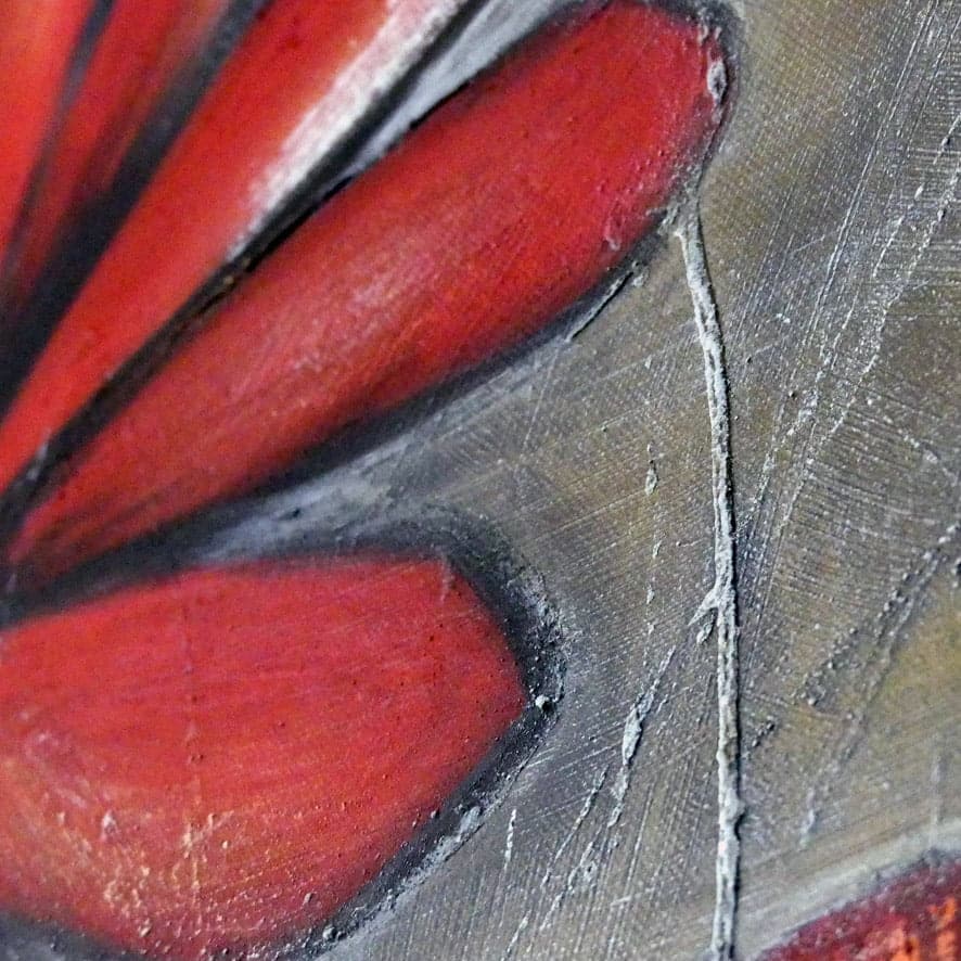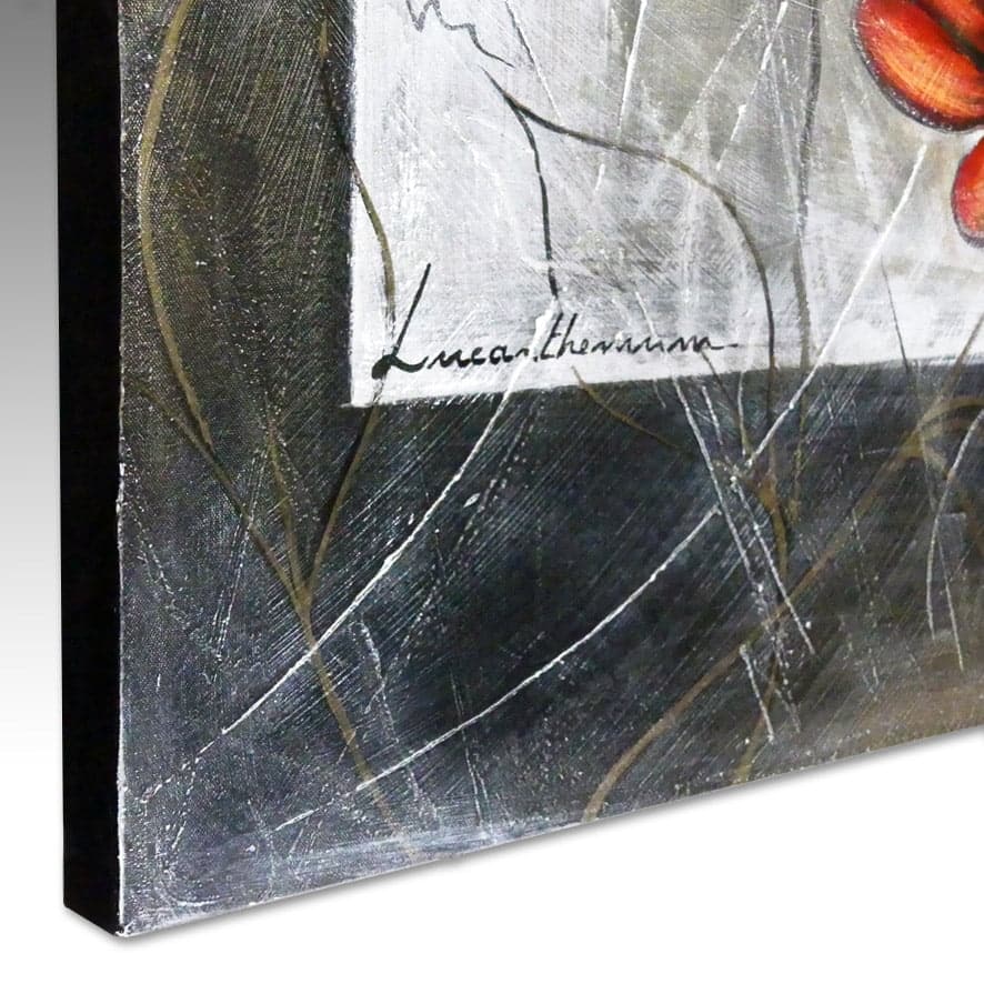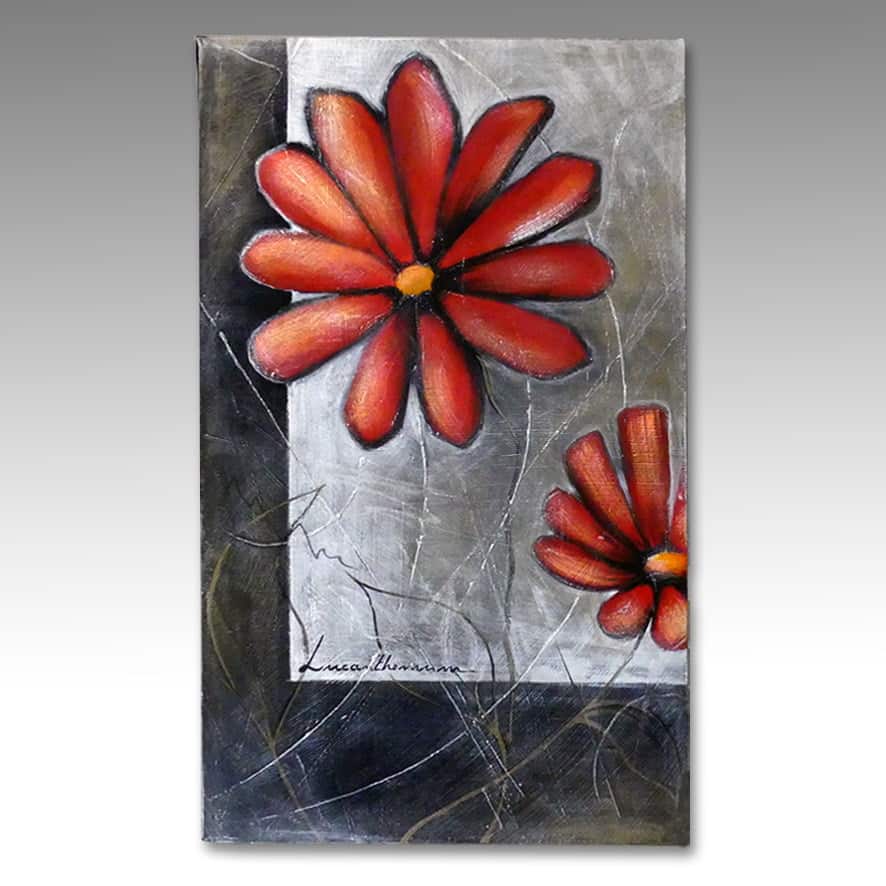 Il quadro olio su tela Fiori rossi è un’opera di artigianato, disegnato a mano su tela.