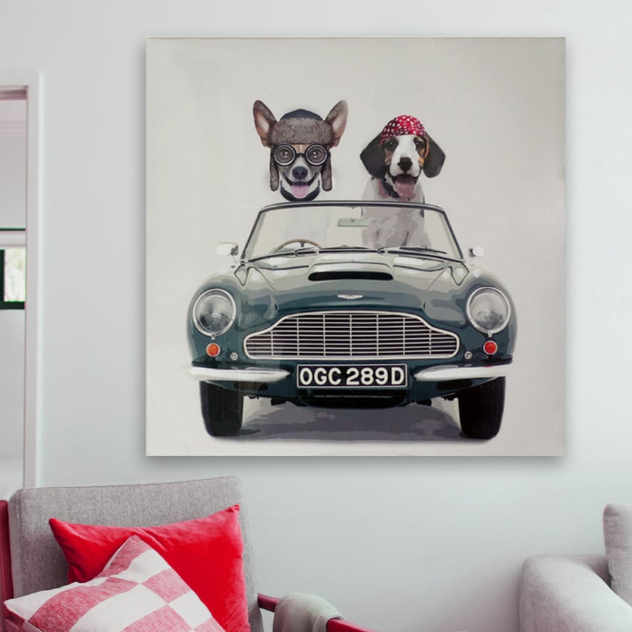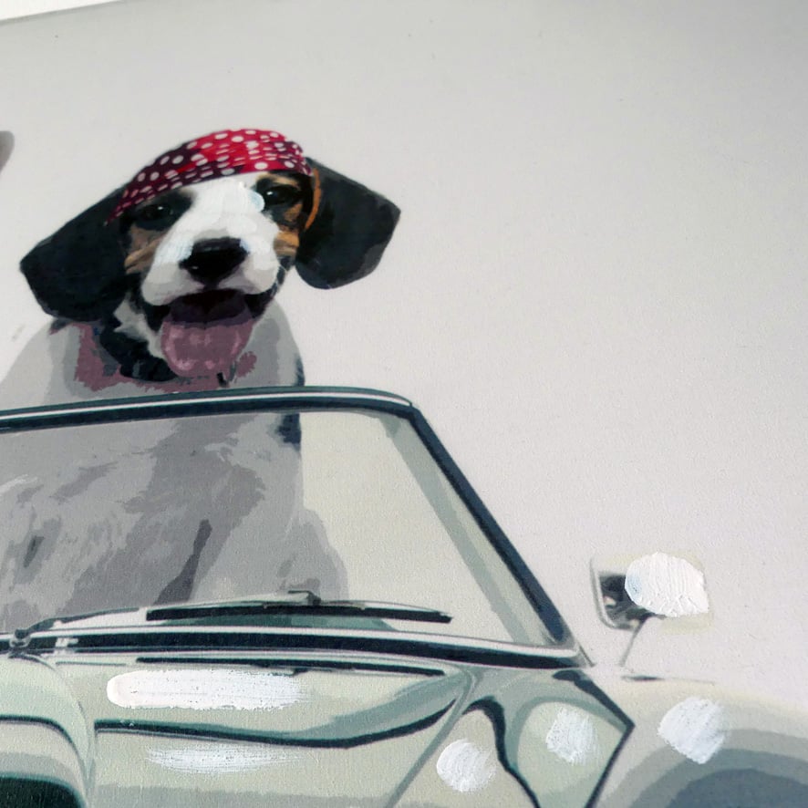 L’Arte di Sorridere: I Cagnolini Guidatori dipinti su Tela