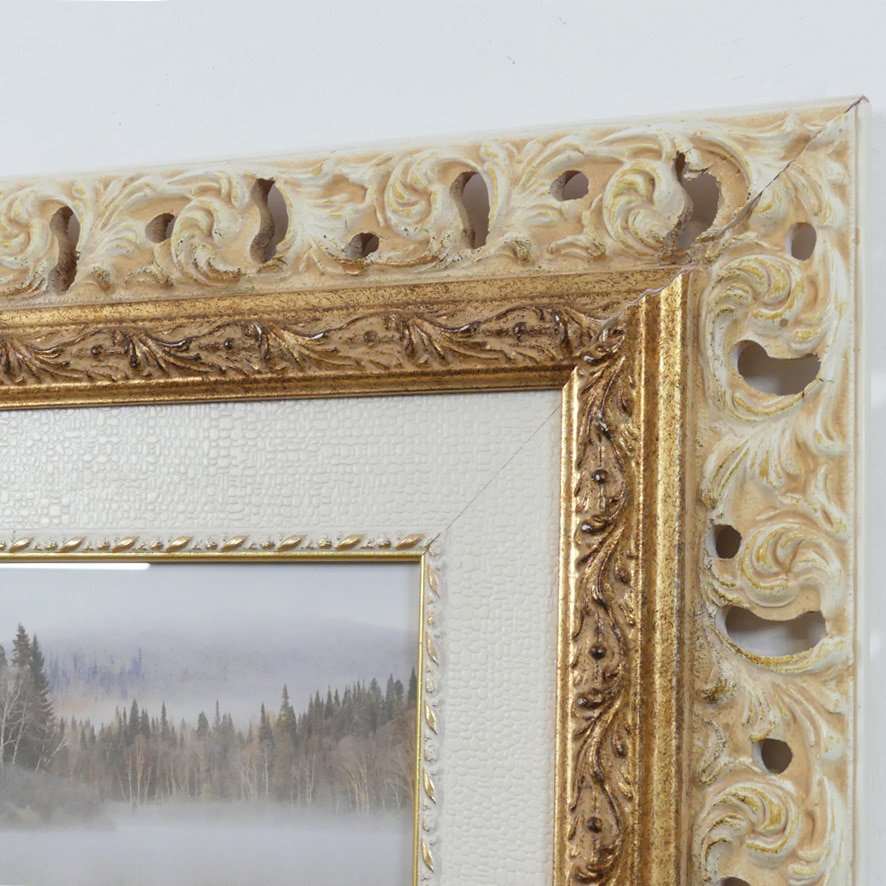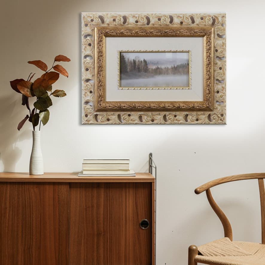 Il tipo di cornice traforata realizzata con intagli e bordo a rilievo decorato, dona un tocco distintivo e sofisticato alla stampa al suo interno.