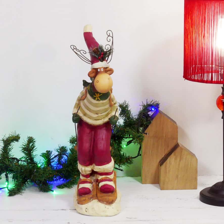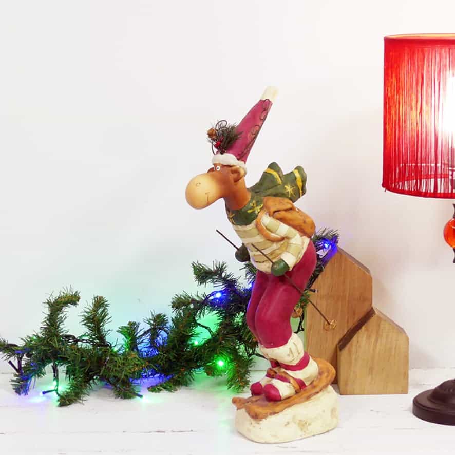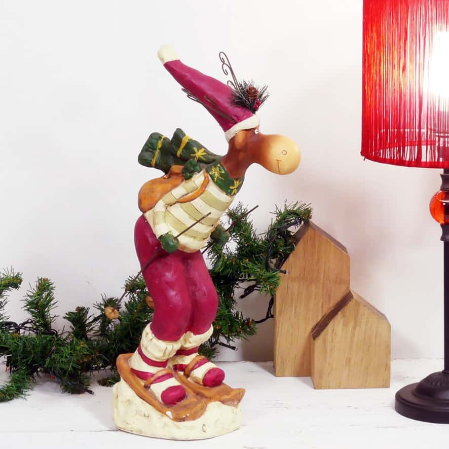 Il decoro renna Funny sciatore si adatta bene ad ogni tipo di ambiente regalando colore e brio.