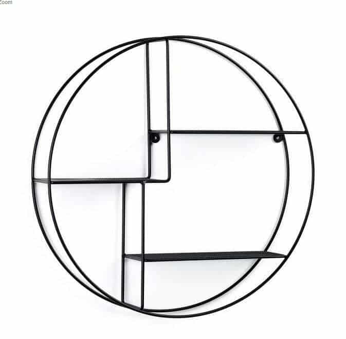 Scaffale libreria a parete “ACROSS” in metallo nero, rotondo Ø55