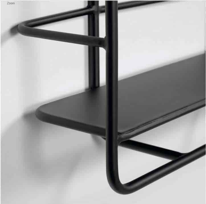 Najat è uno scaffale moderno, contemporaneo, realizzato in acciaio, angoli arrotondati e finitura nera.