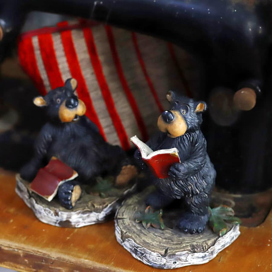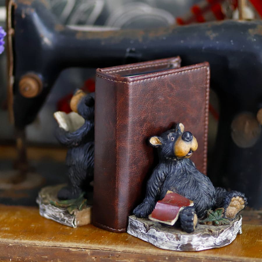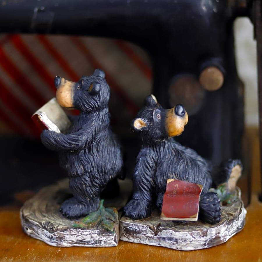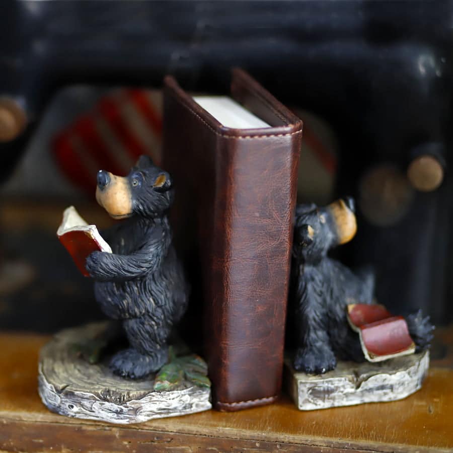 Design originale per questi fermalibri con la sagoma di orsi, realizzati in resina e laccati con colori caldi che risaltano le pieghe della pelliccia dell’orso.