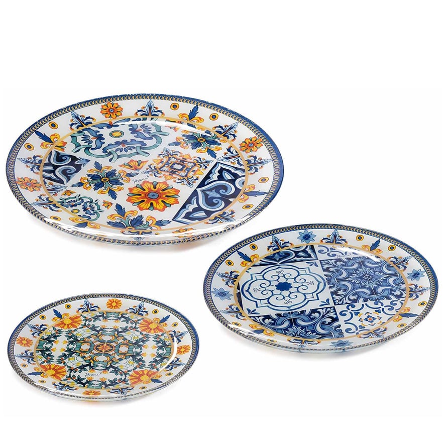 Con l’esclusivo set 3 piatti tondi per alimenti in vetro con decoro “Maiolica” aggiungi un tocco di eleganza e tradizione alla tua tavola.