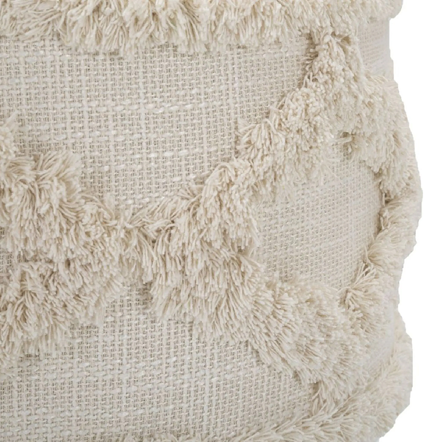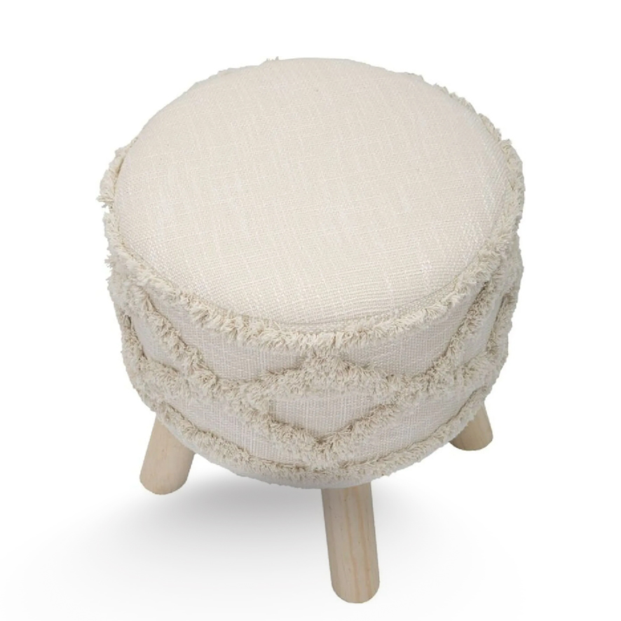 Sgabello Damasco tondo in tessuto imbottito elegantemente decorato, con gambe in legno.