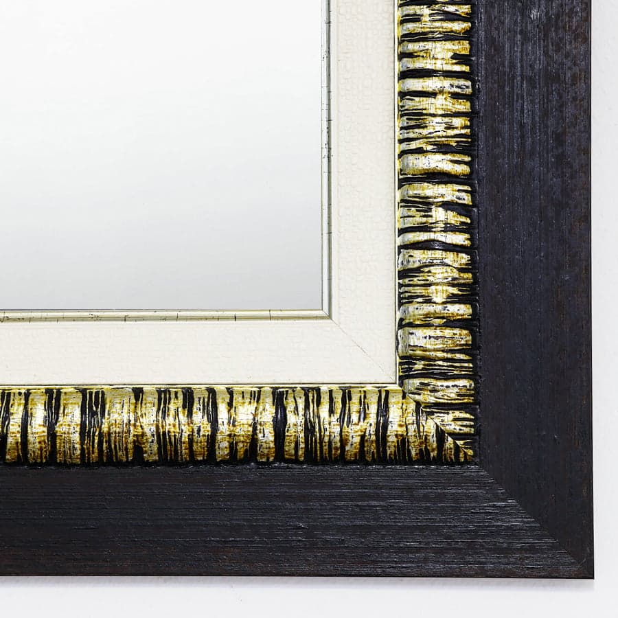 Elemento di spicco è la fascia perimetrale interna in foglia oro con sfumature in argento e il pass-partout in legno con filo argento. E’ di produzione artigianale e può essere richiesto in tutte le dimensioni standard o personalizzate. Particolarmente adatto per ambienti rustici. Appendibile in senso orizzontale o verticale.