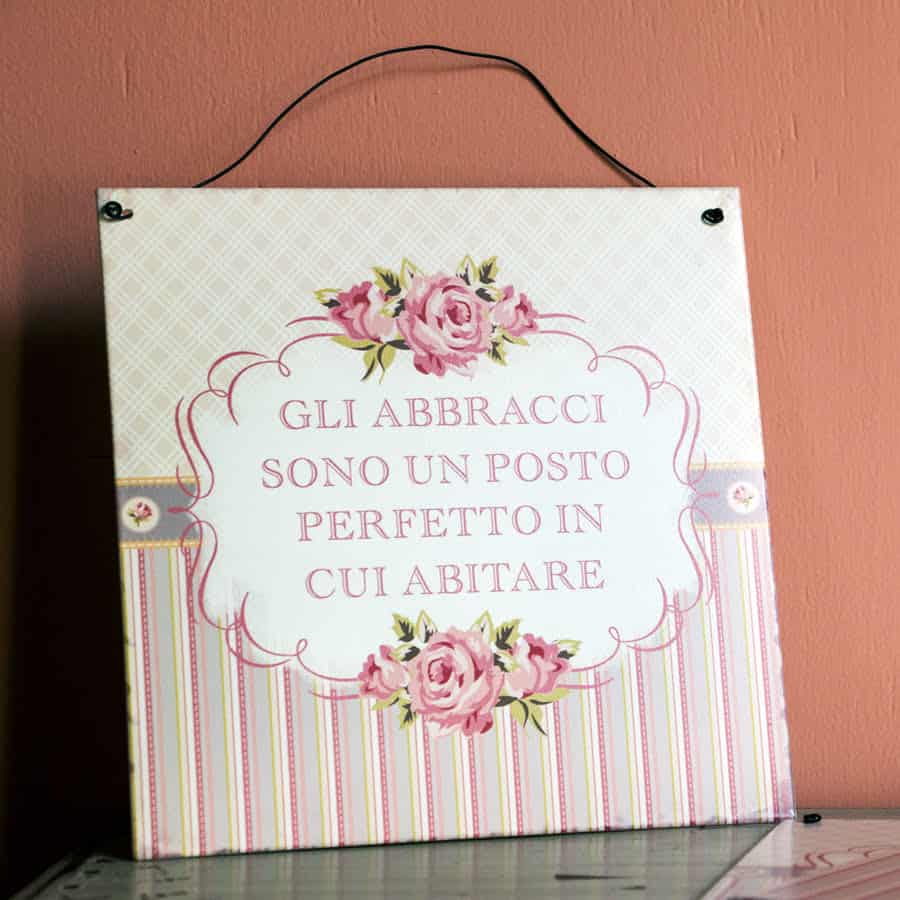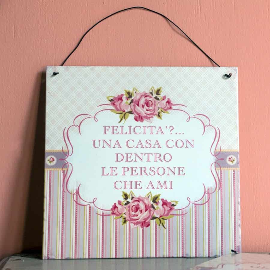 Queste targhe in latta allora fanno al caso tuo! Farai sicuramente felice tutta la tua famiglia arricchendo un ambiente della casa con uno stile misto, unico ed accattivante, fra Shabby Chic nel design e moderno nell’impostazione delle frasi.
