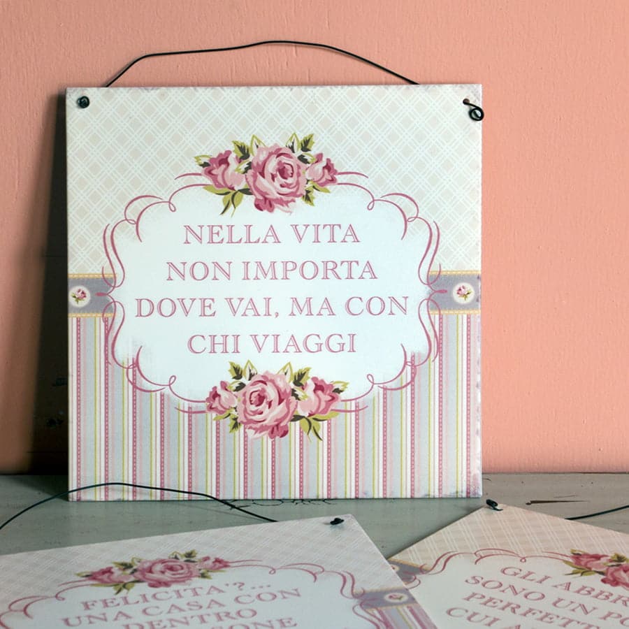 Targhe in latta stile Shabby Chic con 3 differenti frasi motivazionali.