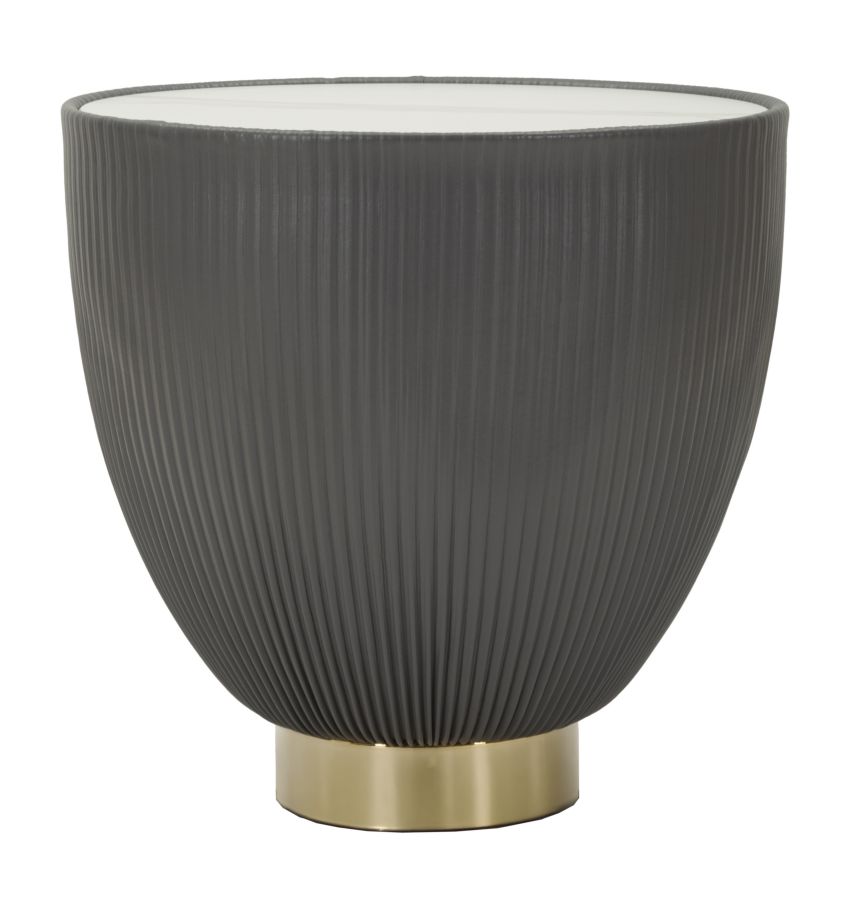 Il Tavolino da Caffè Elge è un raffinato mix di modernità ed eleganza. La base scanalata in grigio scuro, il top effetto marmo e il dettaglio dorato creano un contrasto sofisticato, perfetto per ambienti glamour e contemporanei.
