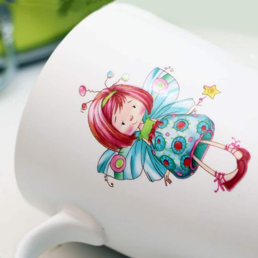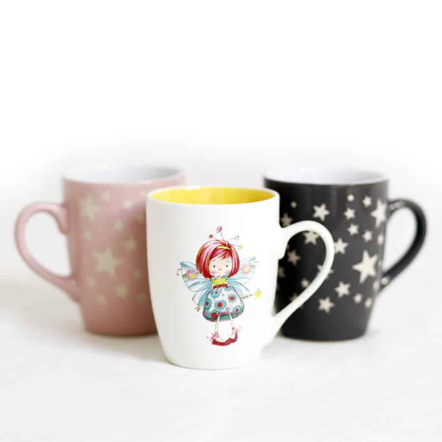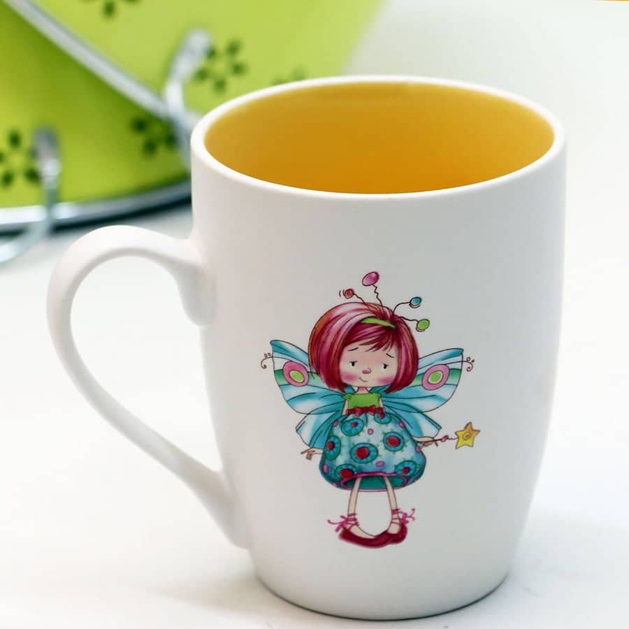 Tazza mug in ceramica con decoro fatina e interno colorato.