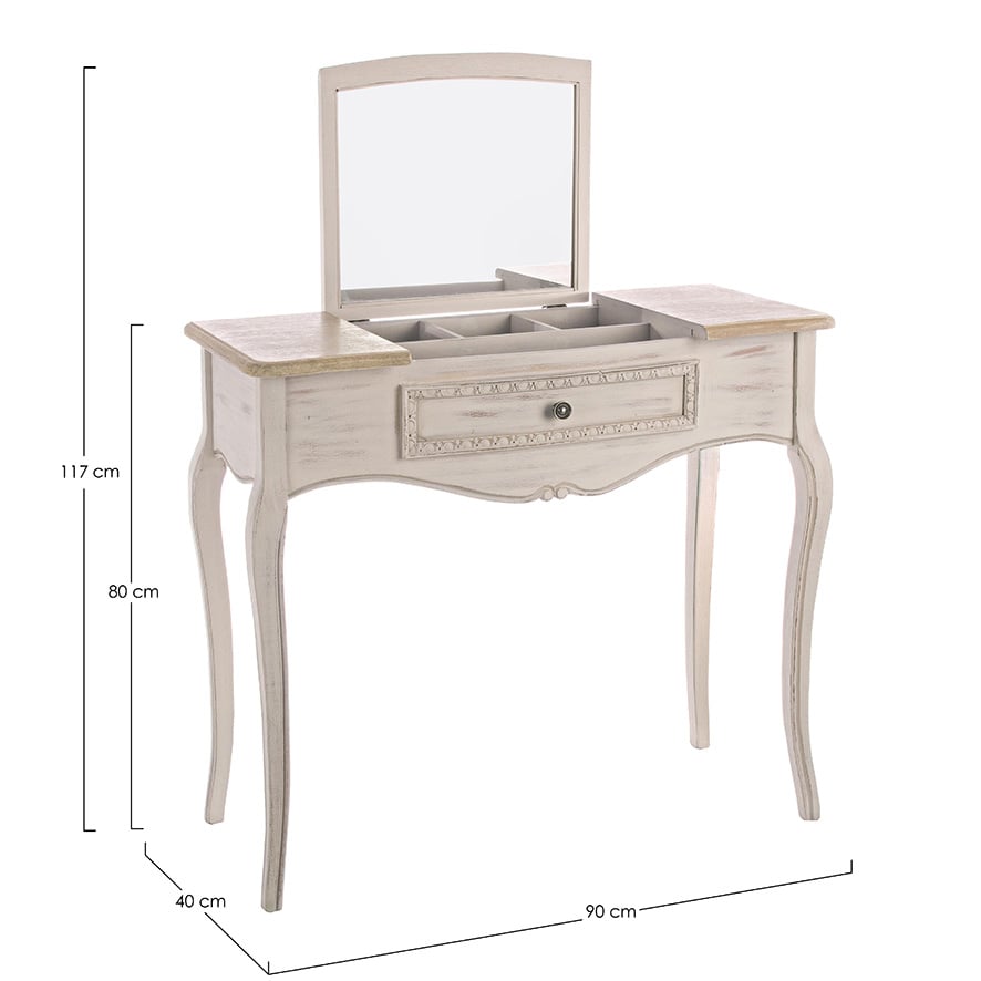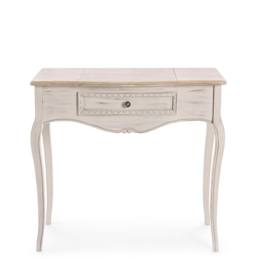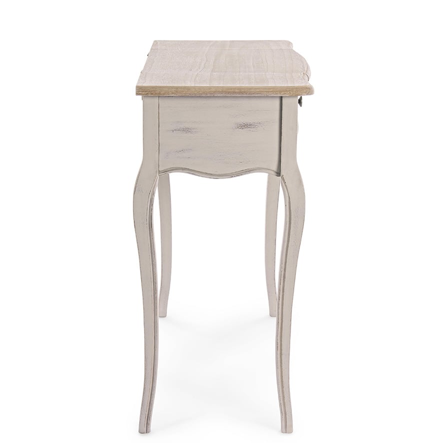 Questa consolle, con le sue linee sinuose e i dettagli finemente intagliati, è un omaggio all’eleganza senza tempo dello stile vintage e country chic. Ogni curva racconta una storia di artigianato, mentre la finitura in legno chiaro, leggermente decapata, evoca immagini di antichi casali francesi immersi nel verde delle campagne.