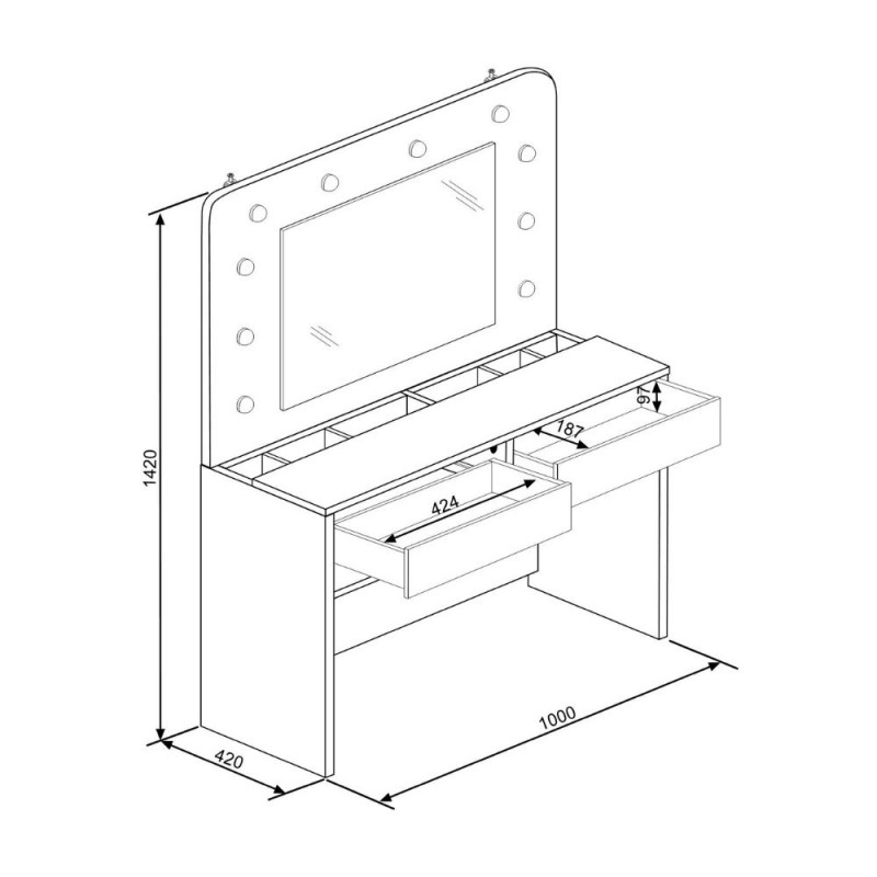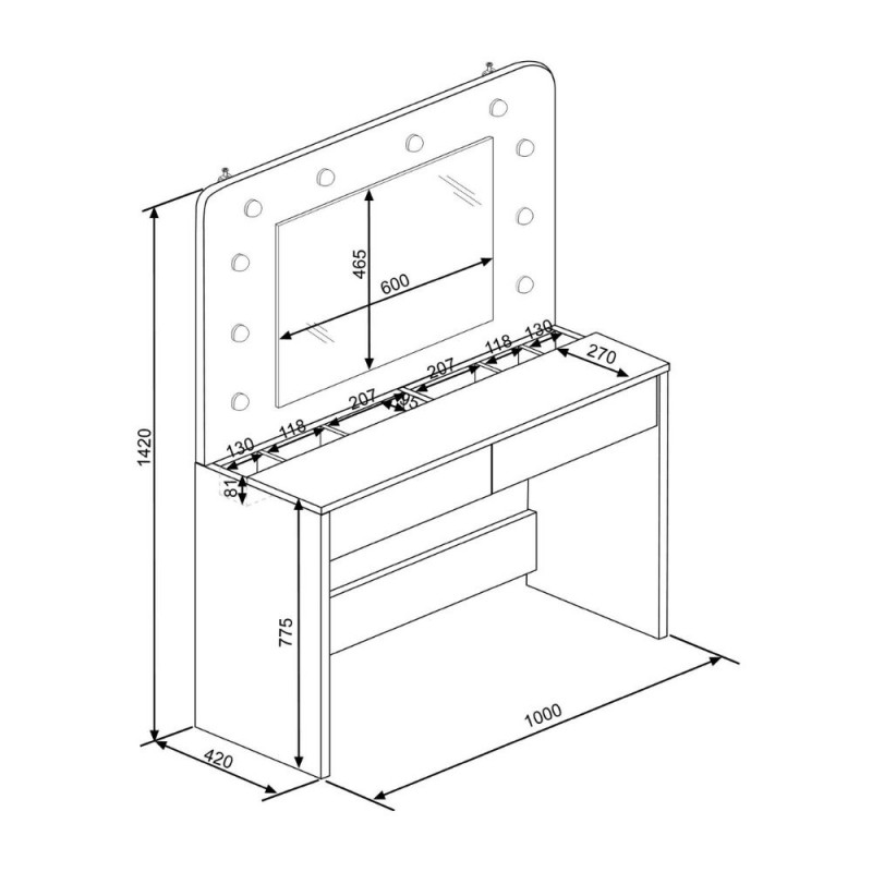 Toelètta da trucco 1780 con specchio, luci e cassetti