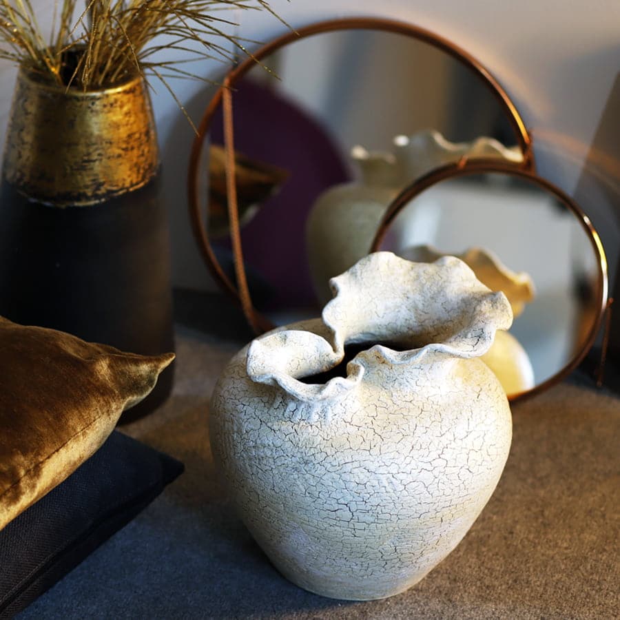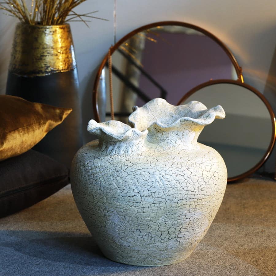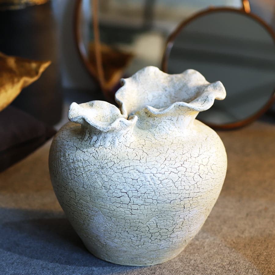Vaso decorativo in ceramica bianca con design effetto Craquelè o screpolato