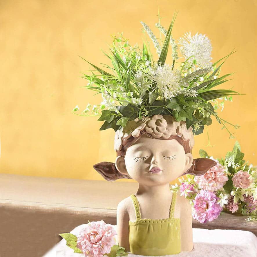 Il vaso decorativo volto di bimba è realizzato in porcellana, adatto per ospitare vasi con piccole piante grasse o da fiori.
