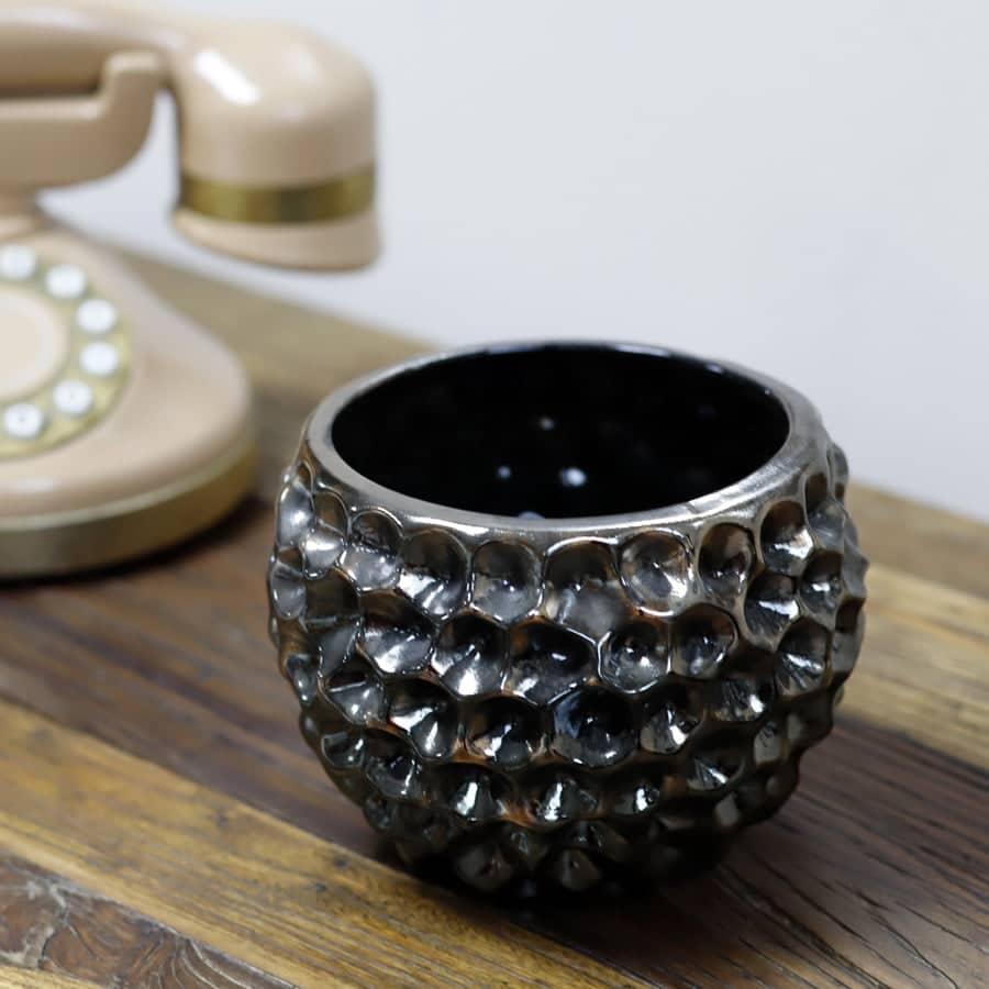 Vaso in ceramica smaltata in nero antracite. Può essere utilizzato come portavaso per piante, svuotatasche o portacioccolatini