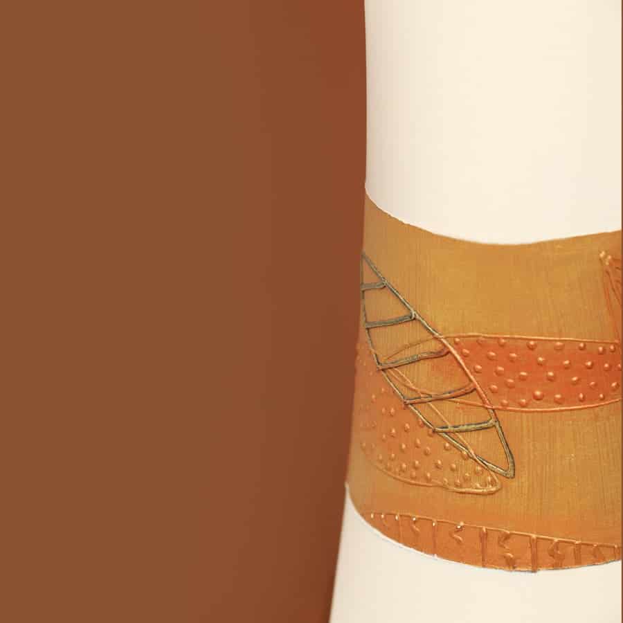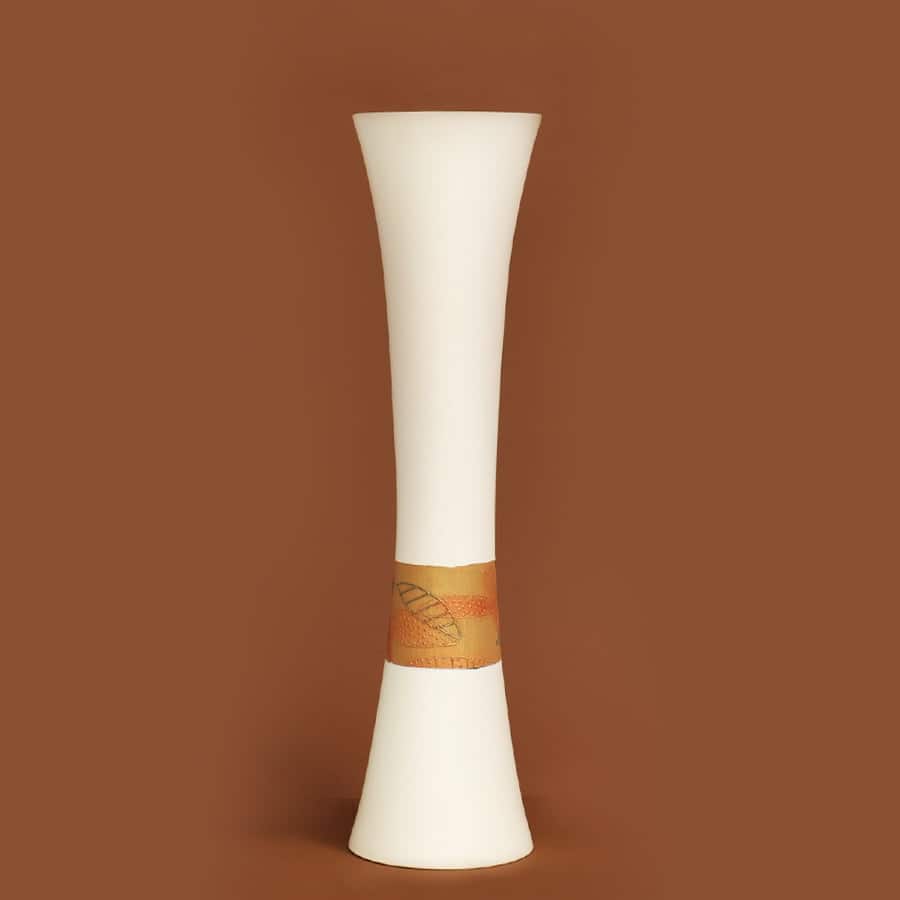 Vaso portafiori etnico in legno, alto, collo stretto, avorio e sfumature nelle tonalità del bronzo