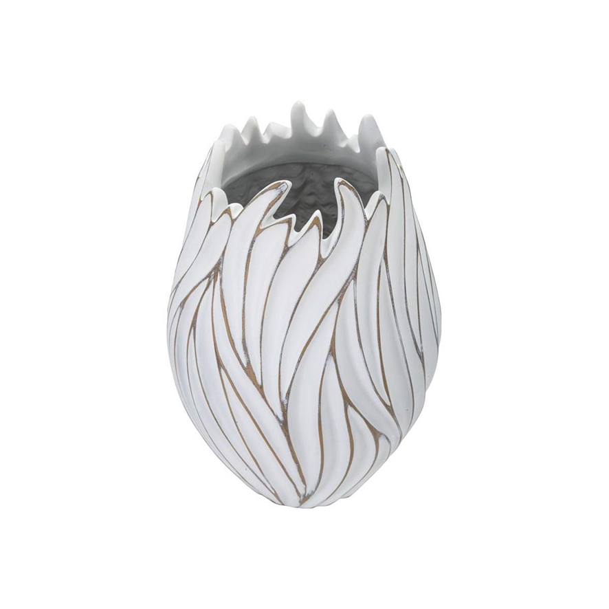 Vaso ovale con decorazioni ondulate in rilievo.